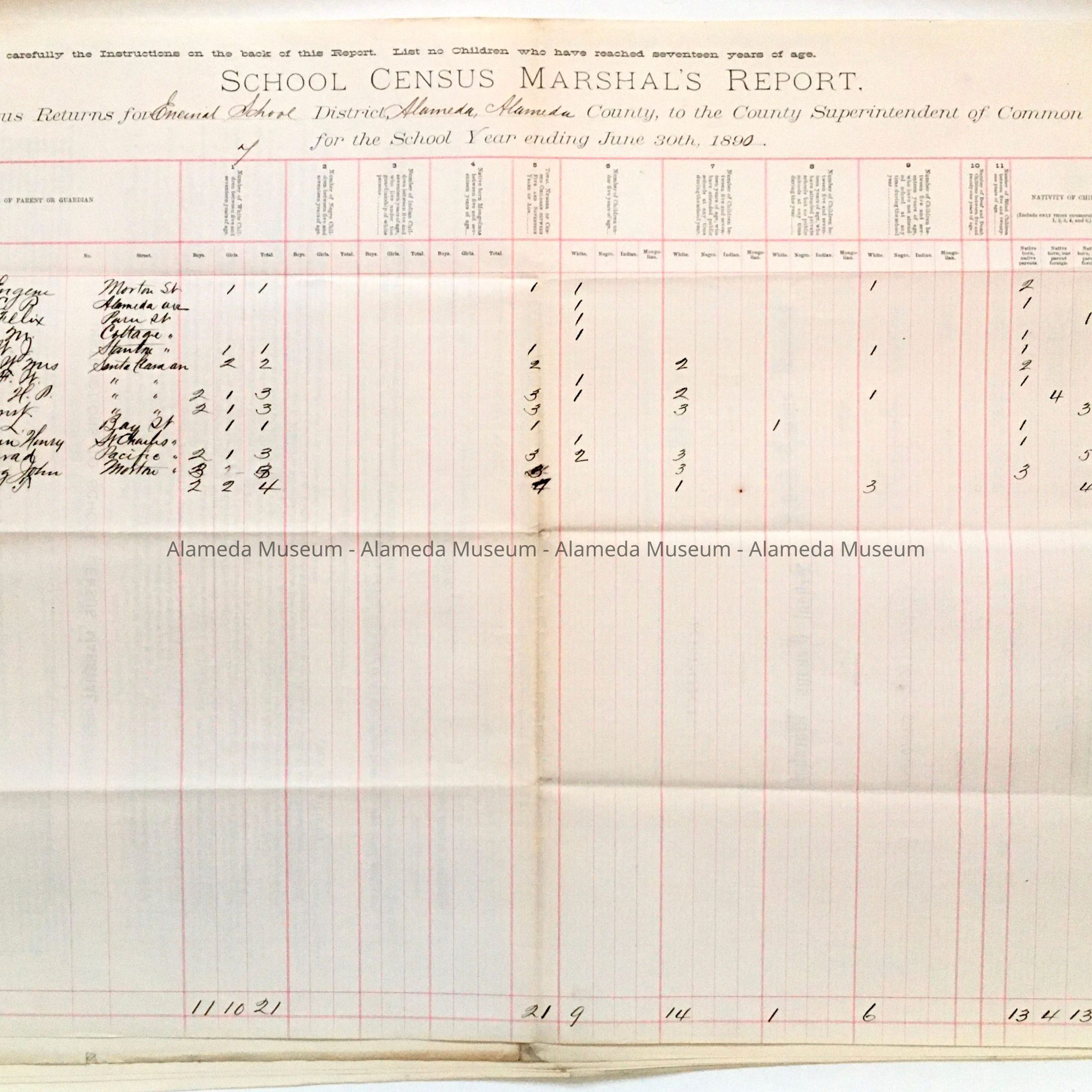 School Census Marshal's Report, Encinal (Mastick) School, 1890Entry/Object ID