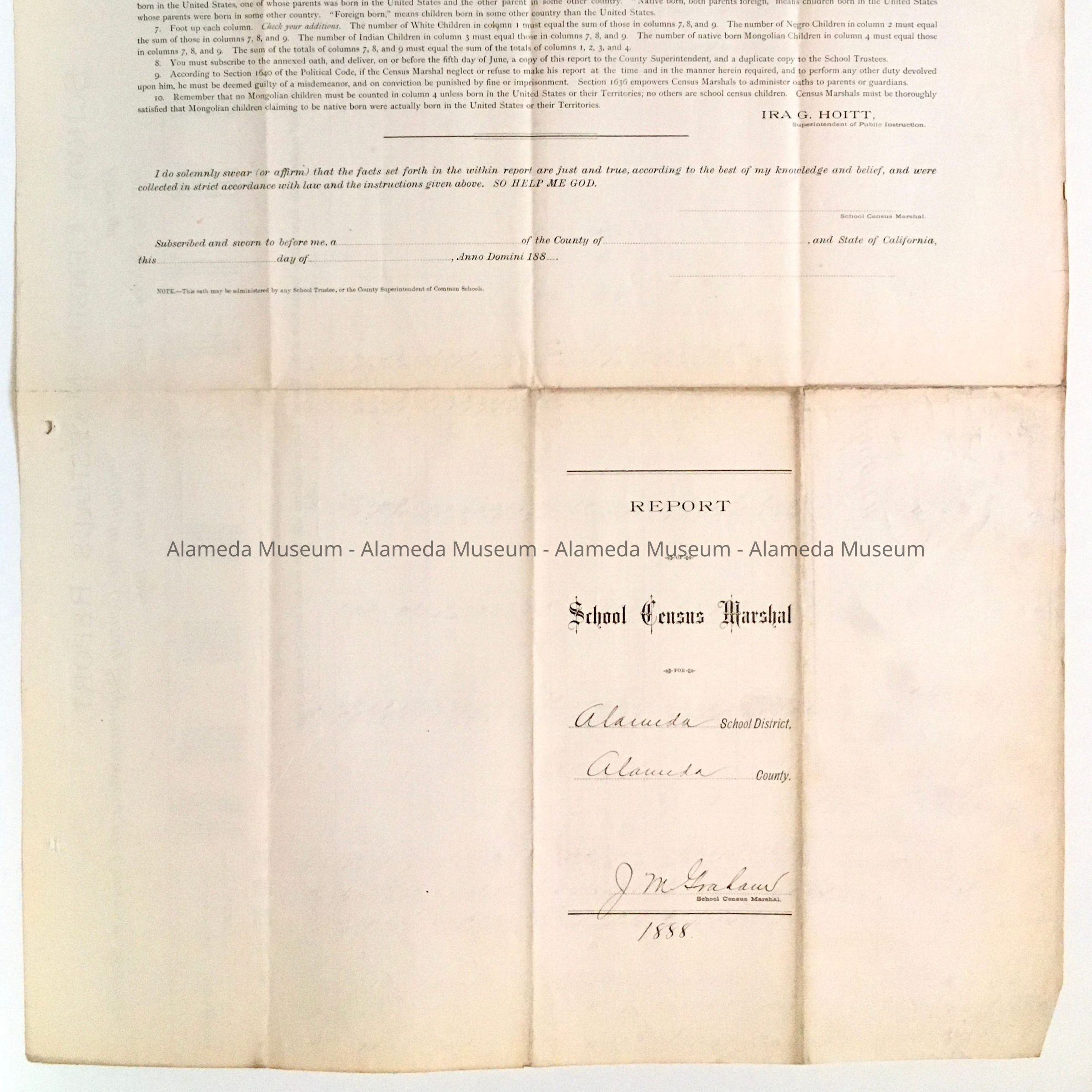 School Census Marshal's Summary Report, 1888Entry/Object ID