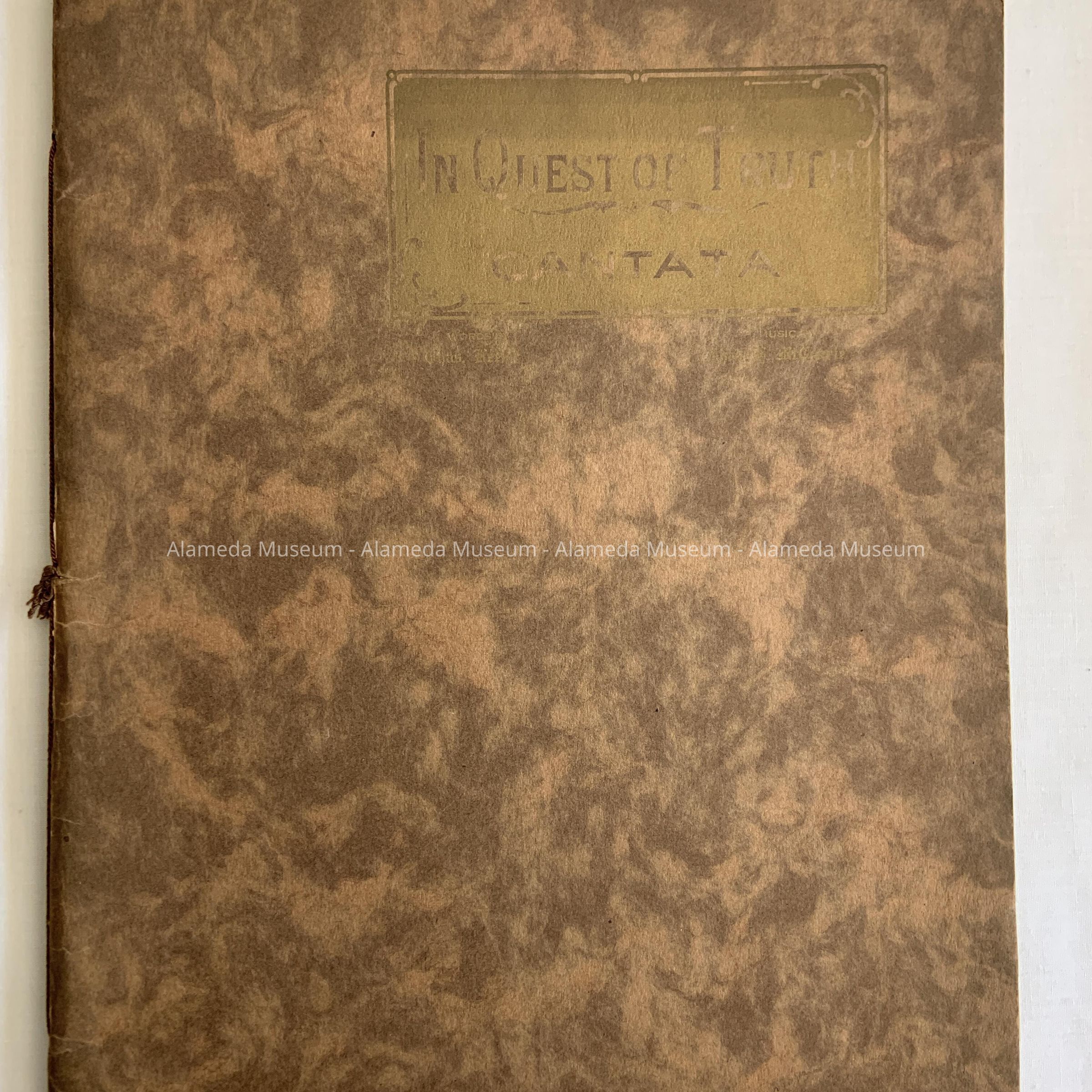 A. MUSIC SCORE, SOFT-BOUND, WITH COVER OF MARBLEIZED PATTERN, TWO-TONE BROWN-COLORED PAPER, WITH CAPTION IN GOLD-COLORED TYPE, "IN QUEST OF TRUTH."