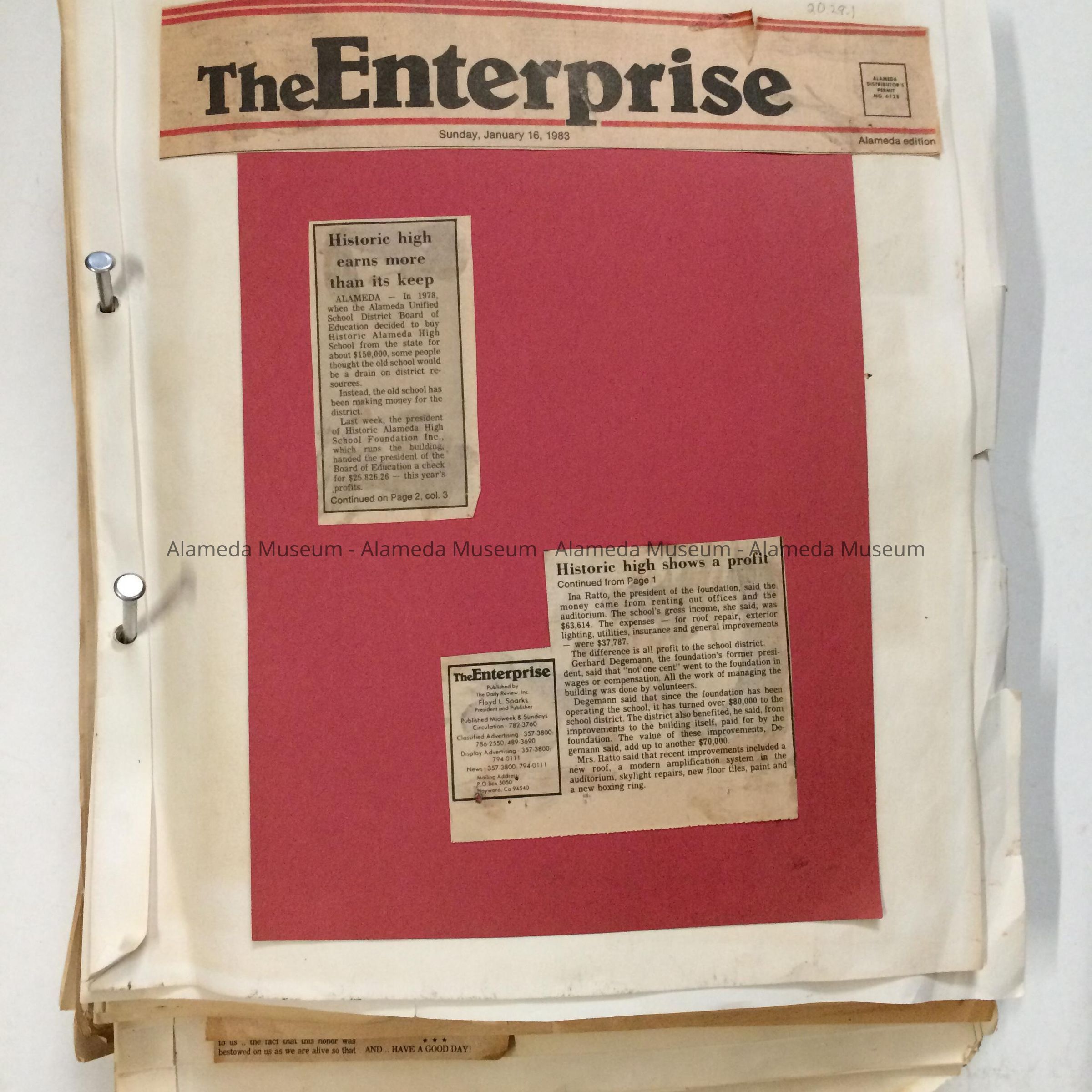 Scrapbook about Alameda High School, 1983-1985Entry/Object ID