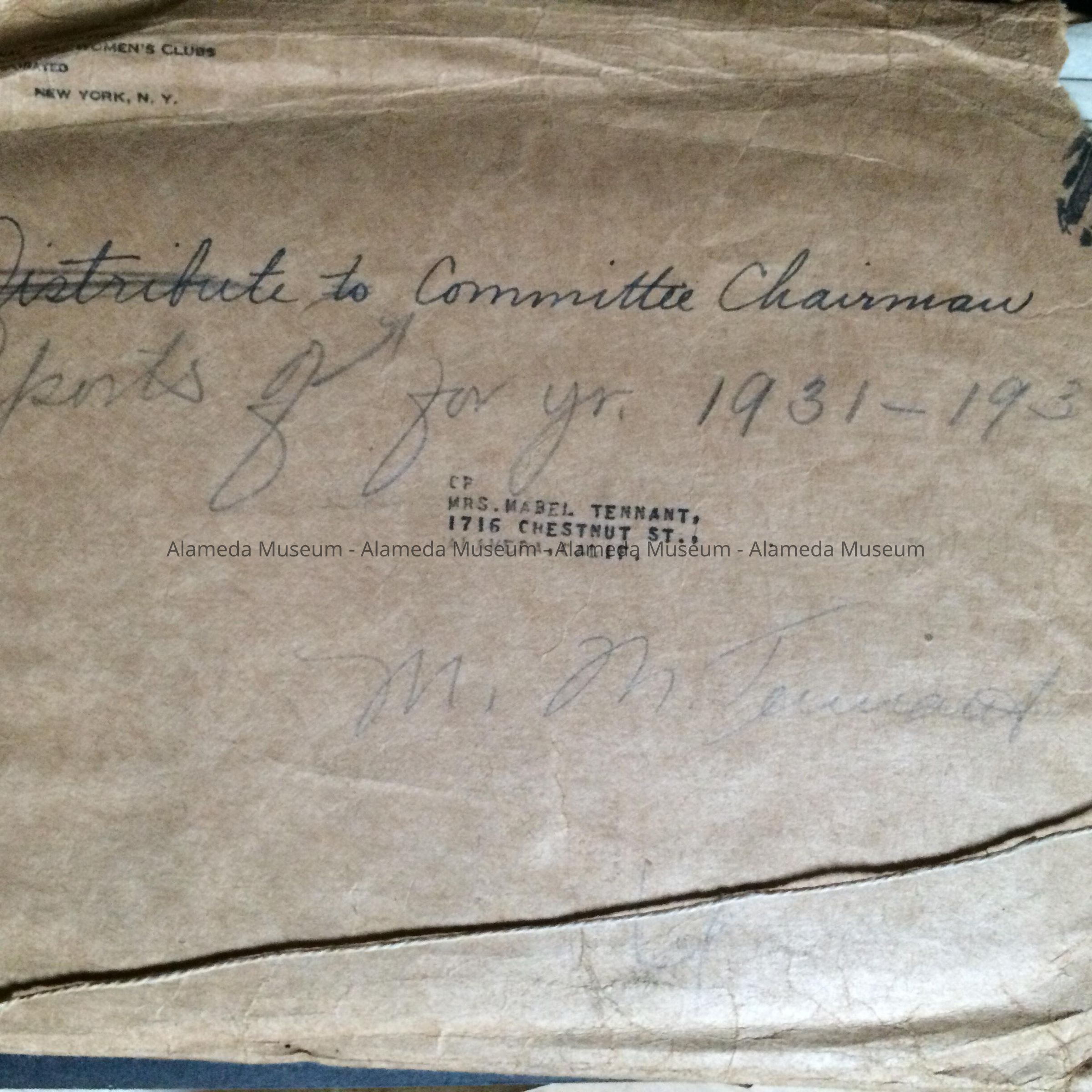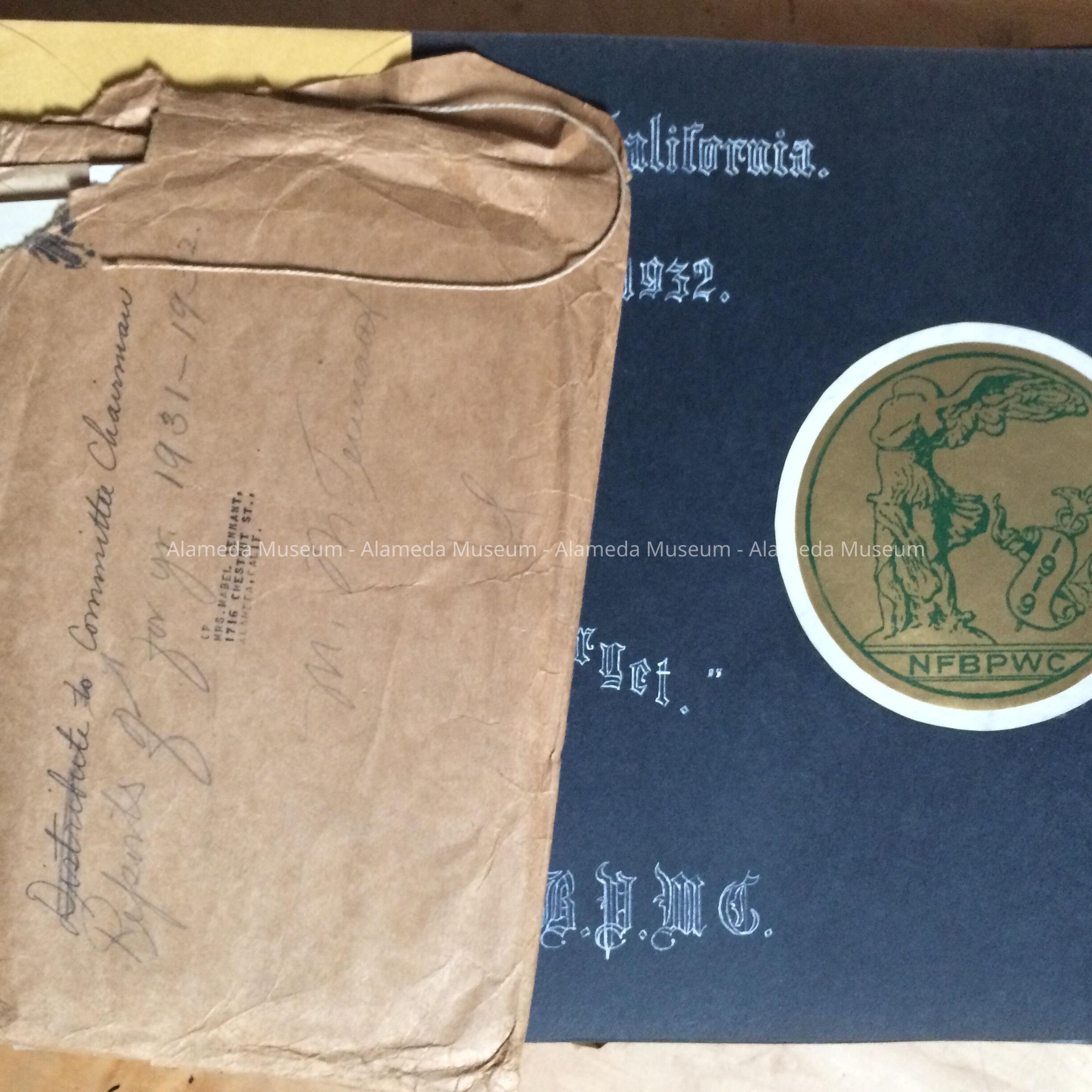 Archives from the Alameda Branch of the BWPC. Formerly the property of Mabel Tennant and as a result of board action it was decided to donate to the museum.