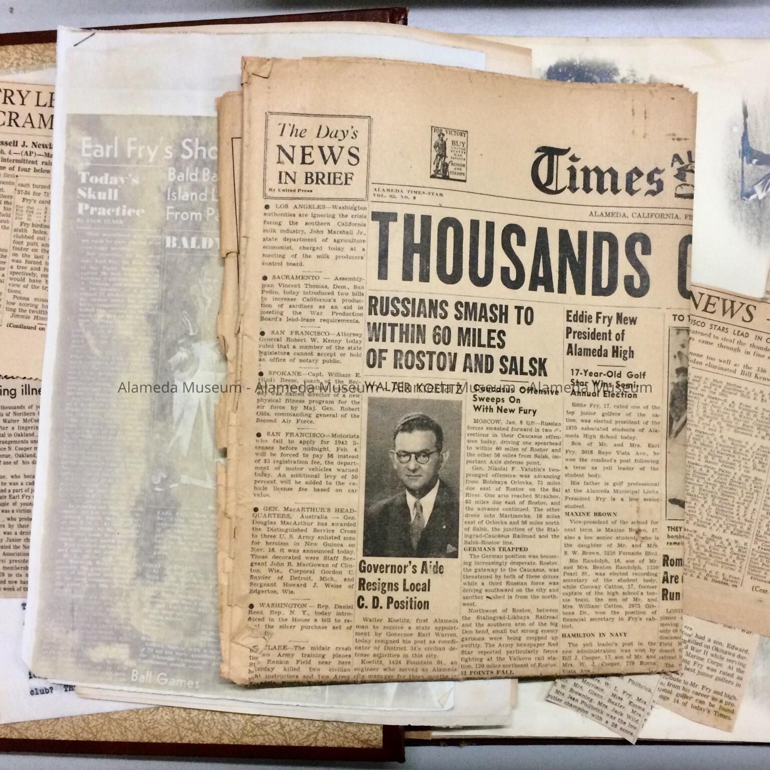 A SCRAPBOOK OF NEWSPAPER CLIPPINGS, ETC. COMPILED BY THE EARL FRY, SR FAMILY.
