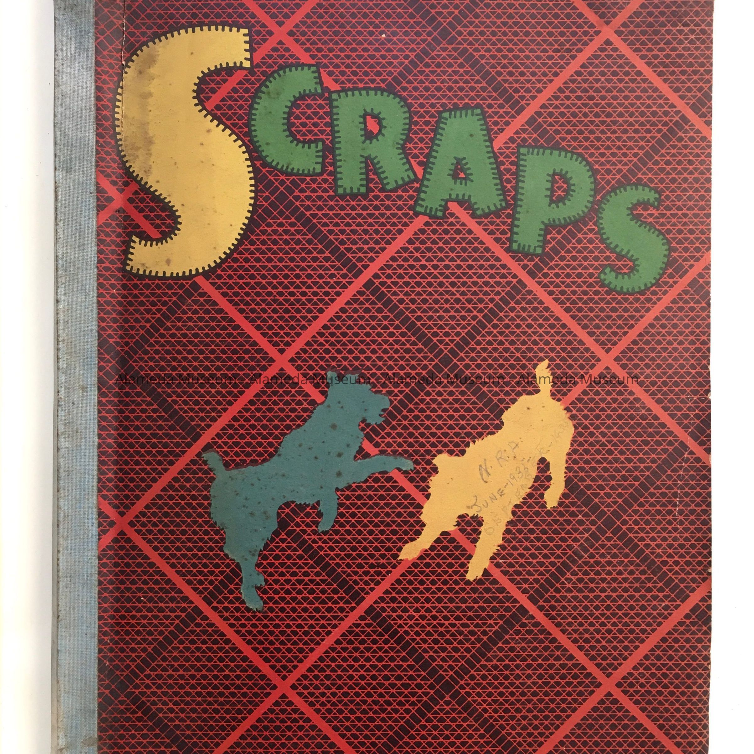 SOFT-BOUND SCRAPBOOK, WITH THE WORD --- "SCRAPS" --- ON COVER.