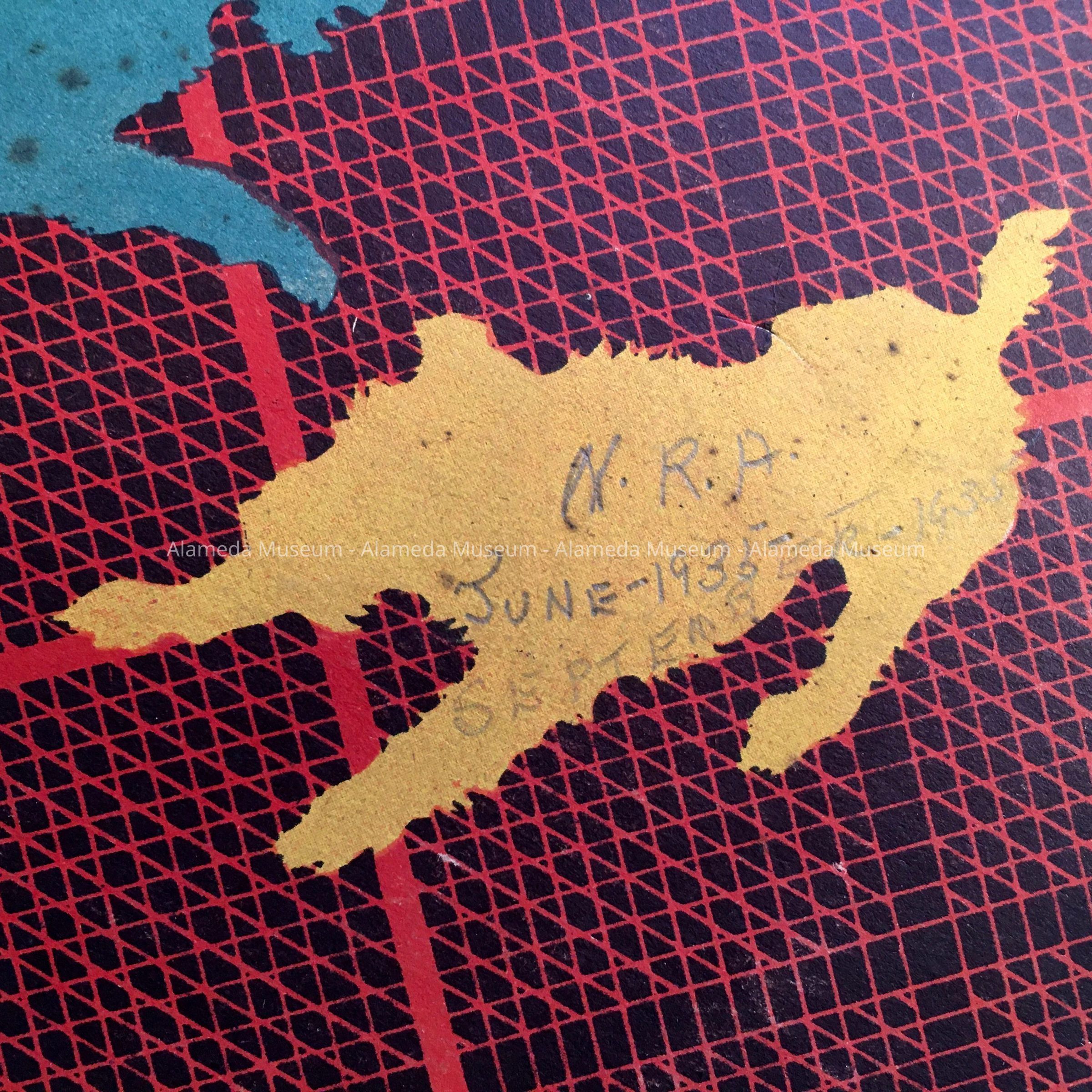SCRAPBOOK CONTAINS CLIPPINGS OF NRA (NATIONAL RECOVERY ACT) FROM JUNE 1935 TO SEPTEMBER 1935. BOOK COMPILED BY THE LATE H D MAYNARD, EXECUTIVE DIRECTOR, EMPLOYMENT BUREAU, CITY OF ALAMEDA. MR MAYNARD SERVED AS A VOLUNTEER IN ASSISTING PEOPLE IN LOCATING EMPLOYMENT DURING THE DEPRESSION. AN OFFICE WAS PROVIDED IN CITY HALL FOR HIS USE. HE RESIDED ON ENCINAL AVENUE IN ALAMEDA. HE WAS A MEMBER OF THE BOARD OF EDUCATION DURING CONSTRUCTION OF ALAMEDA HIGH SCHOOL; HE WAS ALSO A MEMBER OF THE ELKS' LODGE. THIS COLLECTION WAS GIVEN TO THE ALAMEDA HISTORICAL SOCIETY ON MAY 12, 1973, BUT HERETOFORE NOT OFFICIALLY CATALOGED.