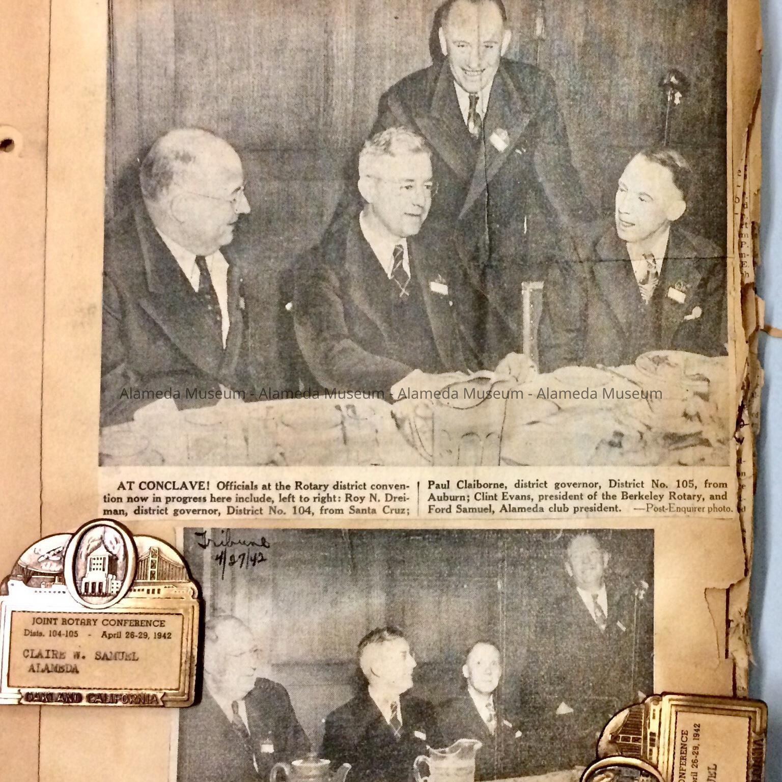 SCRAPBOOK COMPILED BY THE LATE FORD E SAMUEL, POSTMASTER, CITY OF ALAMEDA. THE SCRAP BOOK CONTAINS ARTICLES, ETC. CONCERNING THE ALAMEDA BRANCH OF THE ROTARY CLUB, AND MISCELLANEOUS ARTICLES, ETC. REGARDING THE ALAMEDA POST OFFICE. ALBUM WAS DONATED TO THE ALAMEDA HISTORICAL SOCIETY PRIOR TO 1971, NUMBERED "S-80," AND NOT CATALOGED UNTIL 1997.
