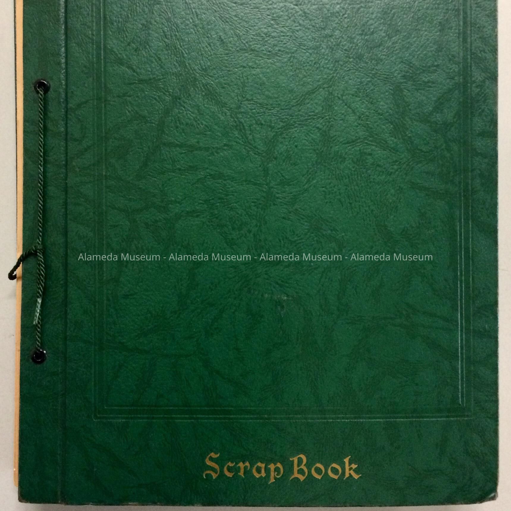 A LOOSE-LEAF SCRAPBOOK, WITH COVER OF IMITATION GREEN-COLORED LEATHER. A GREEN-COLORED SILK CORD SERVES AS ITS BINDING.