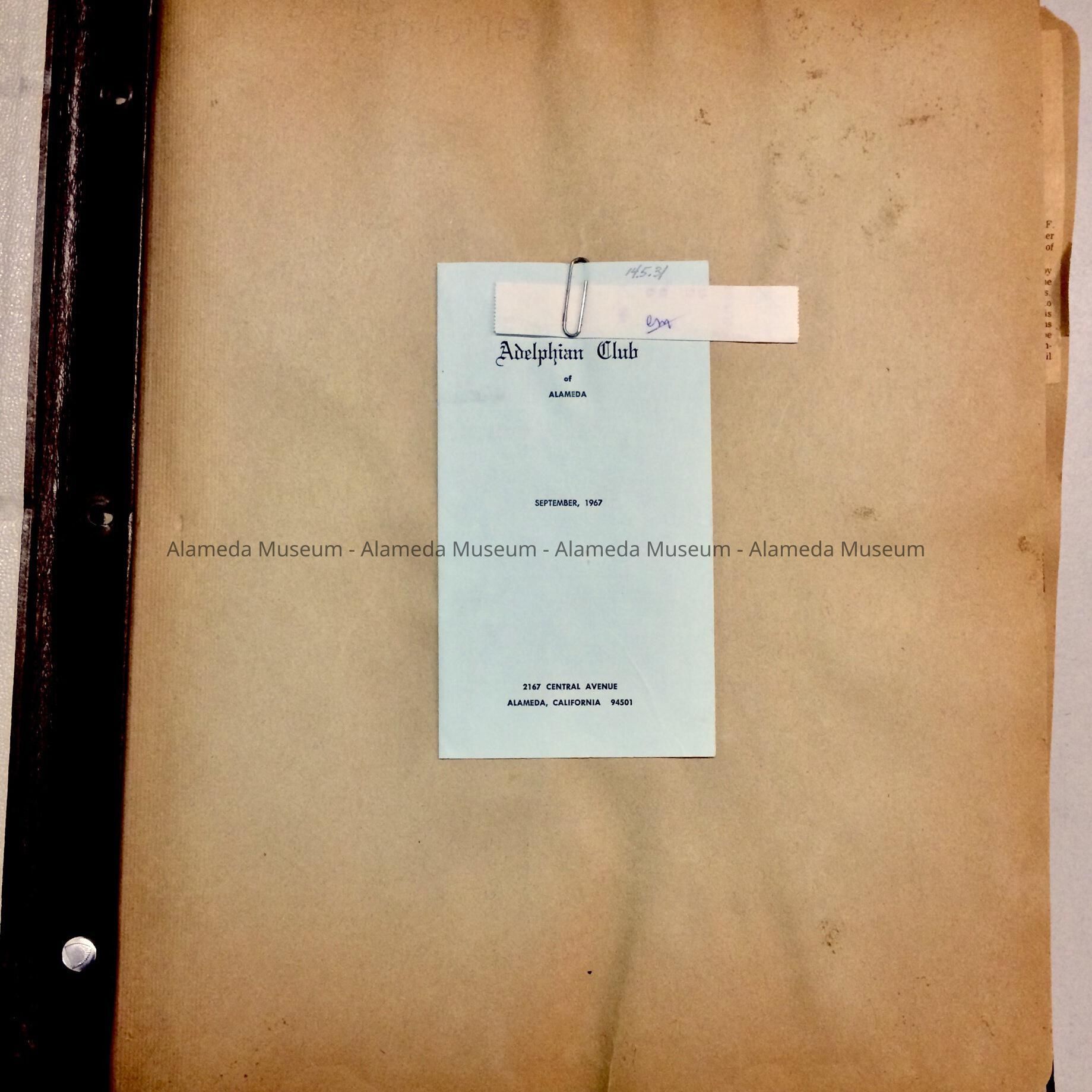 A SCRAPBOOK CONTAINING NEWSPAPER CLIPPINGS (SOME ILLUSTRATED) OF EVENTS OF THE ADELPHIAN CLUB, 1967-73.
