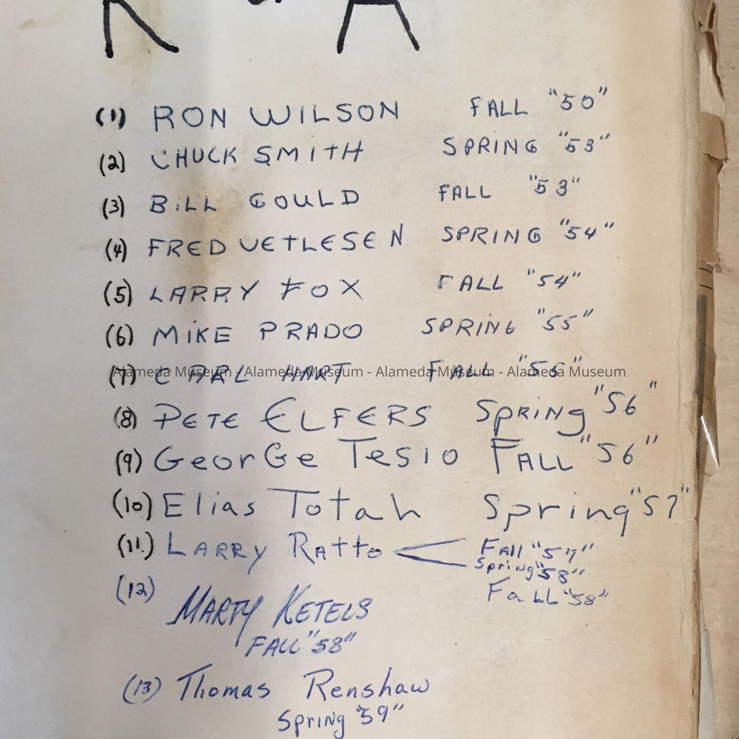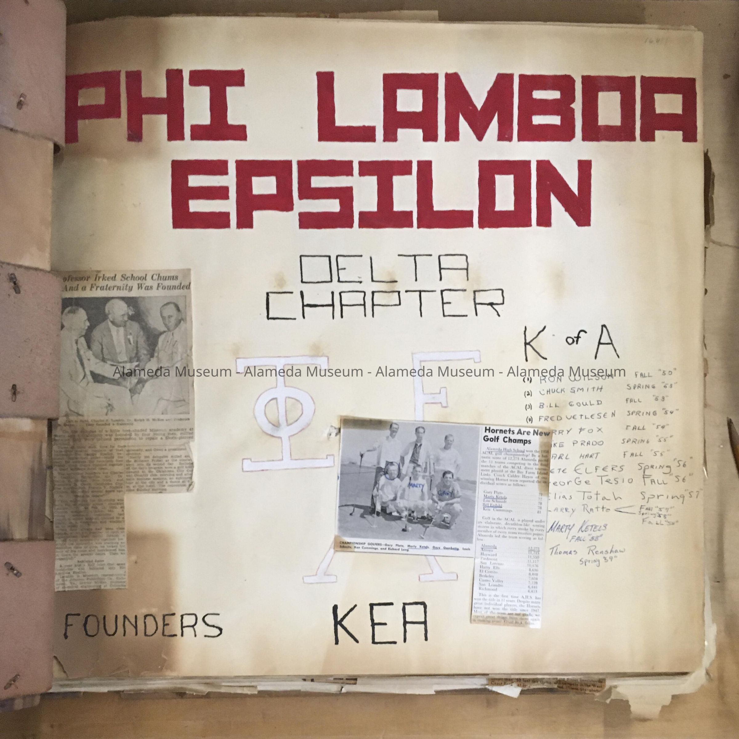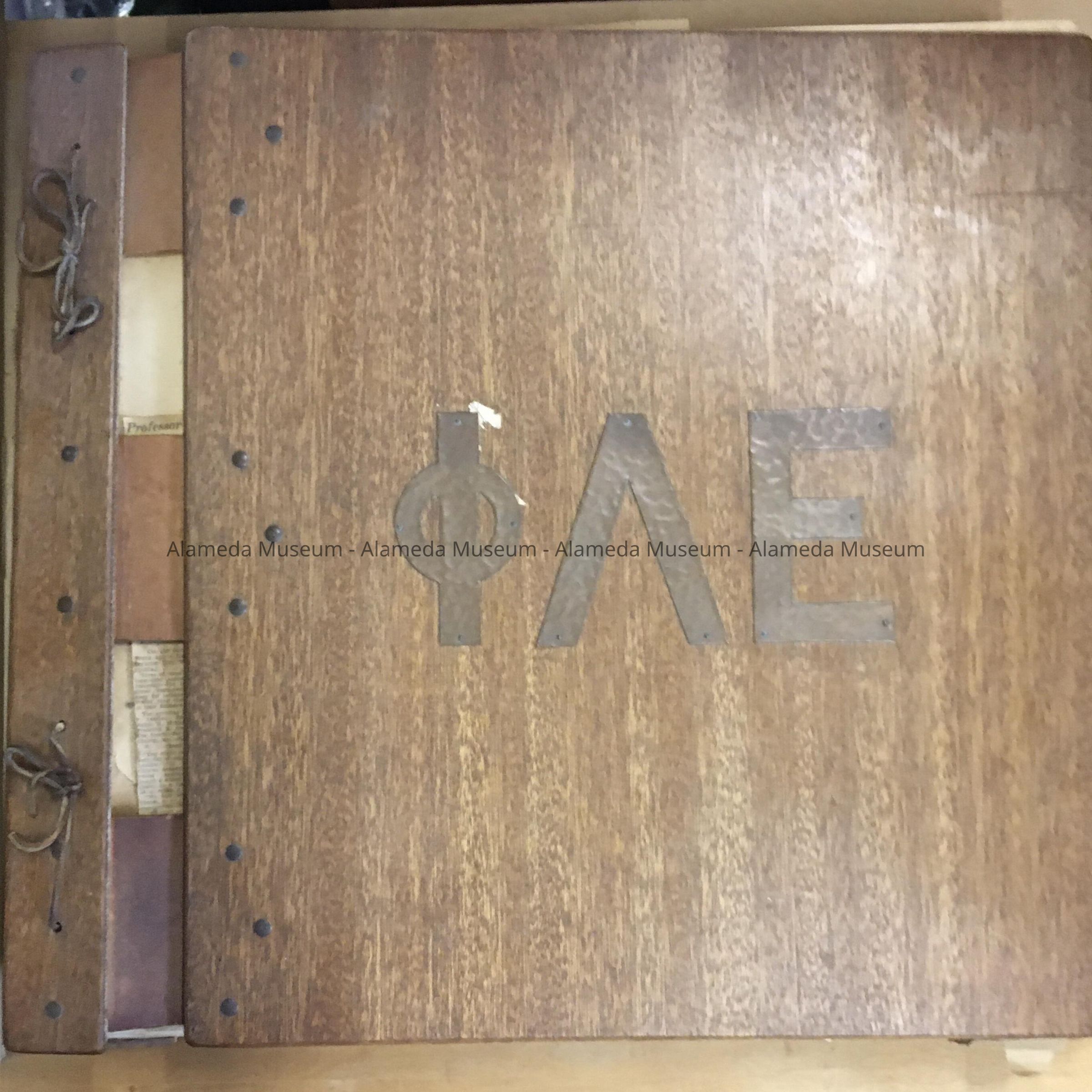 HISTORY OF OBJECT: A SCRAPBOOK COMPILED BY MALE MEMBERS OF THE ALAMEDA HIGH SCHOOL FRATERNITY CHAPTER OF PHI LAMBDA EPSILON DELTA. THE BOOK CONTAINS PROGRAMS, DANCE INVITATIONS, PHOTOGRAPHS, ETC. CONCERNING THE ORGANIZATION. THE PUBLICATION MAY HAVE BEEN MANUFACTURED BY STUDENTS OF ALAMEDA HIGH SCHOOL.