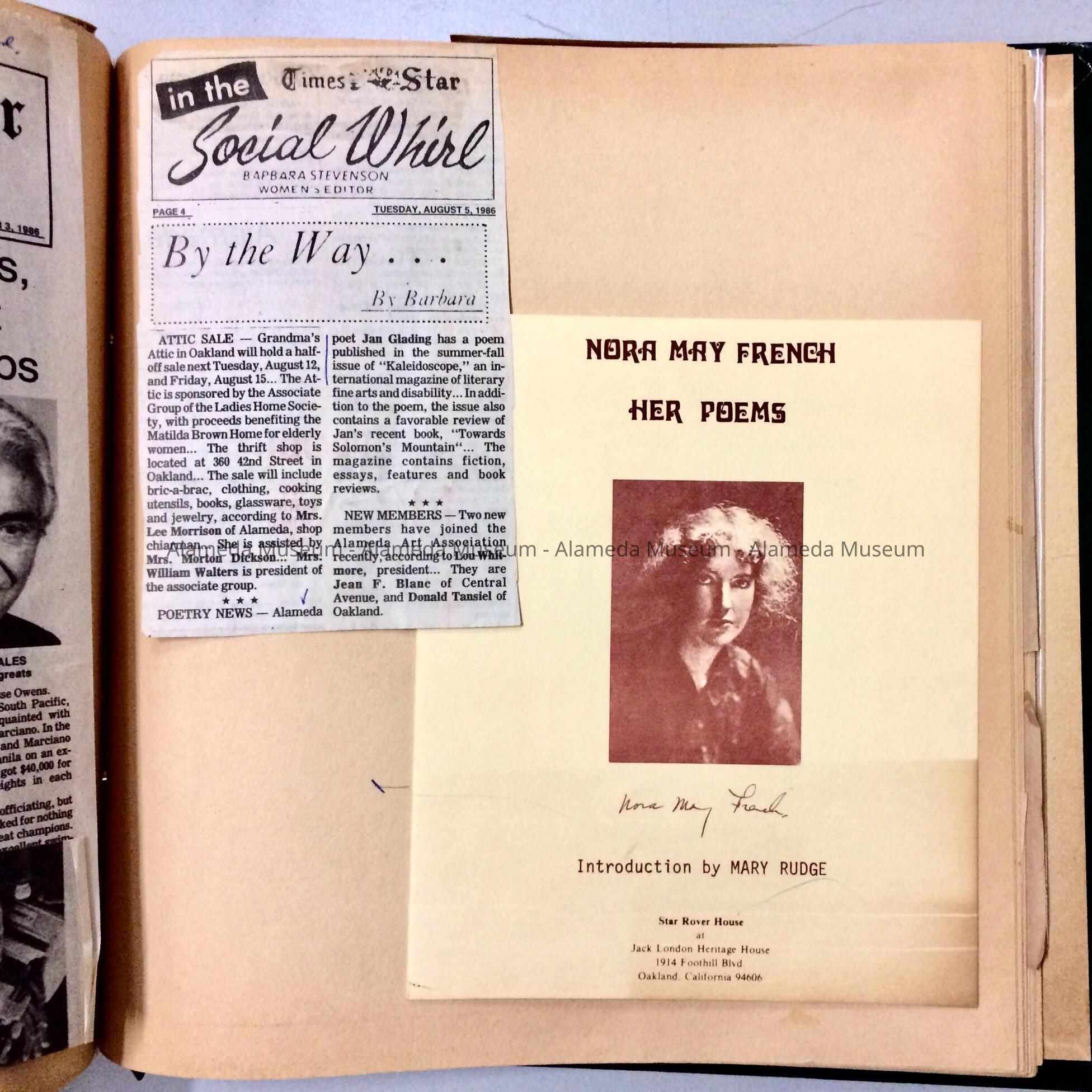 Scrapbook containing newspaper clippings concerning the organization known as Alameda Poets, a group of local poets who formed the organization in 1986.