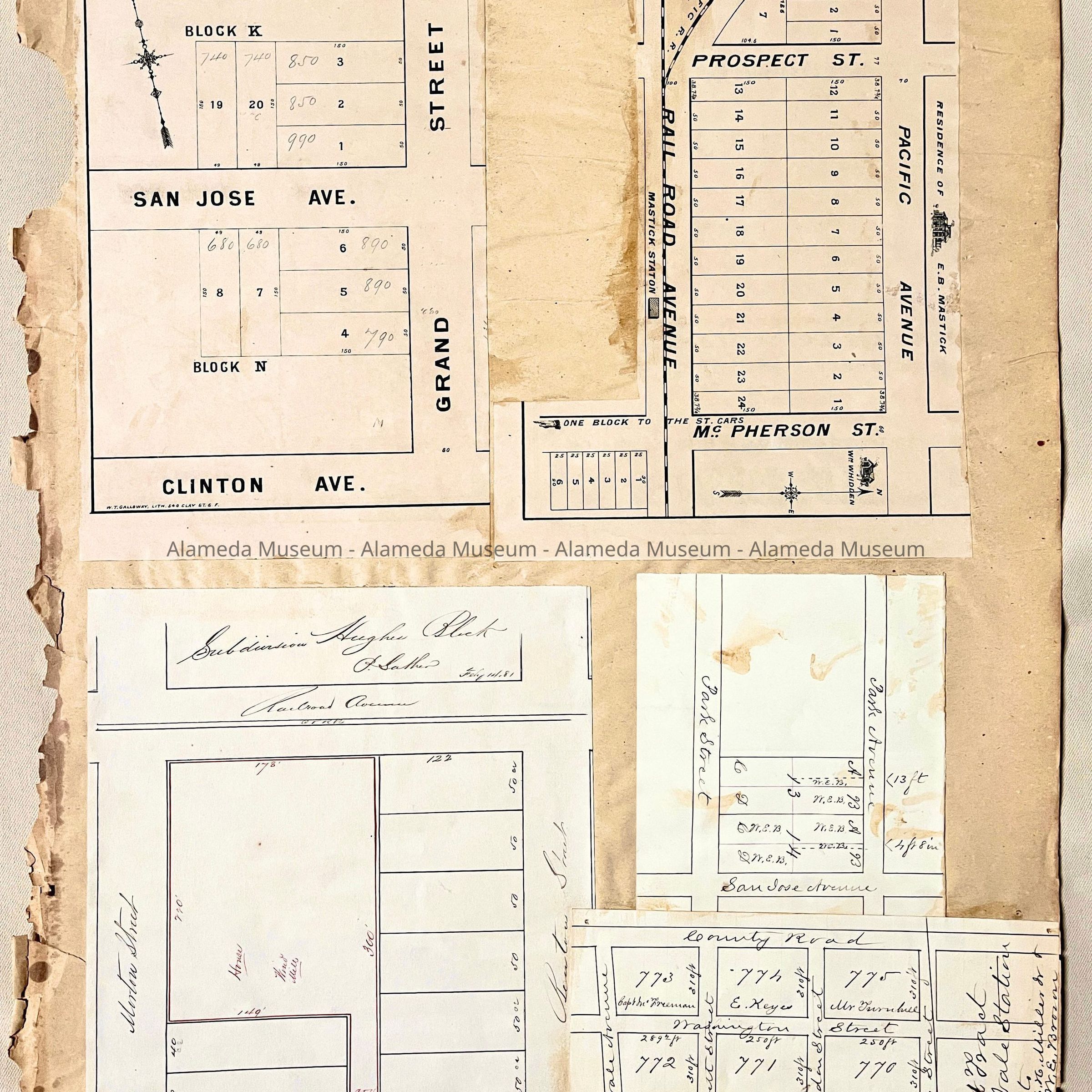 Scrapbook page with Real Estate maps and subdivision map, c. 1881Entry/Object ID