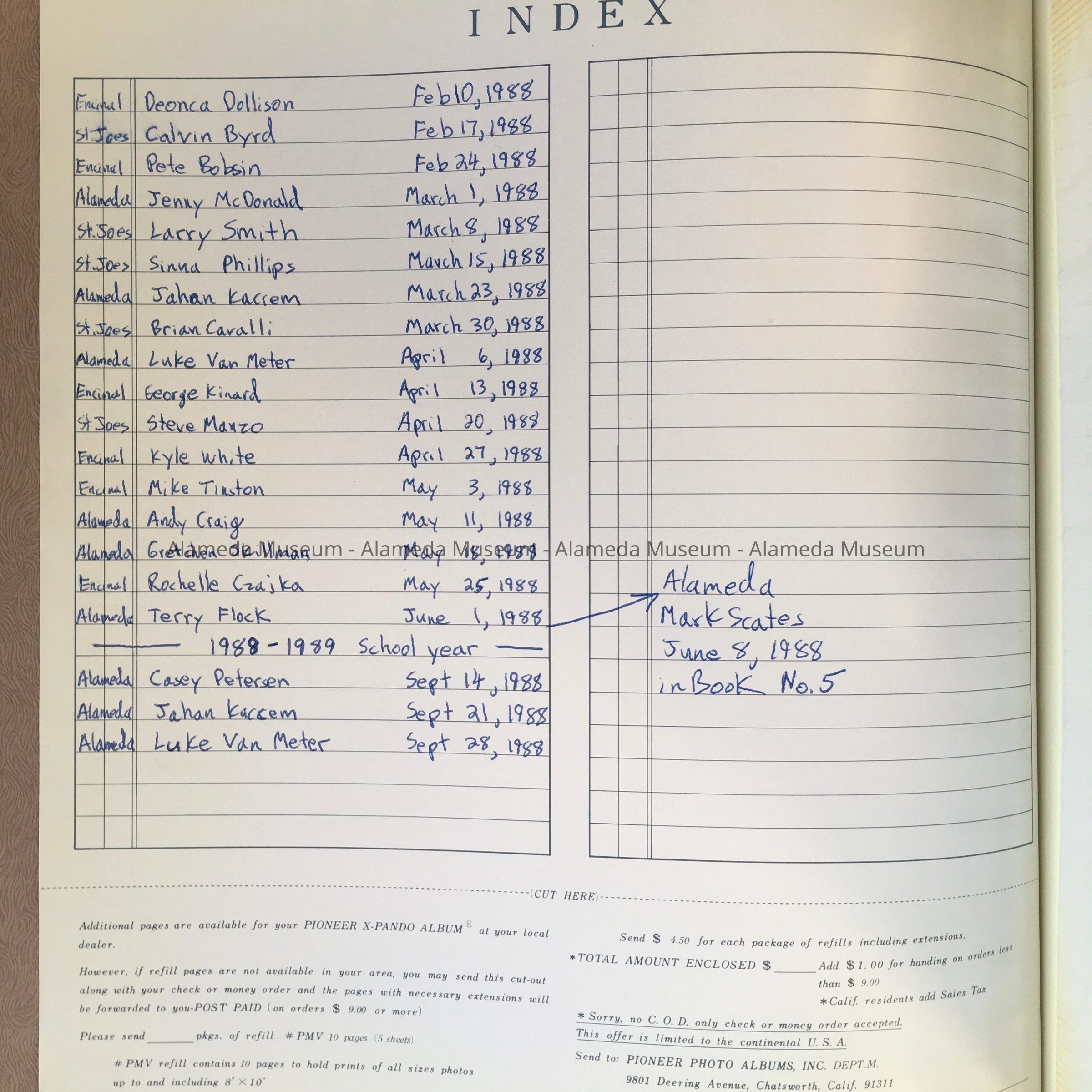History: A Scrapbook of clippings of a column by Mitch Pritchard, Staff Writer, that appeared in the Alameda Times Star, reporting on promising athletes from Alameda High Schools (Alameda, Encinal, and St Joe (Saint Joseph)). The articles date from Feb. 10, 1988, to Sept. 28 1988 (except for the June 8 article).