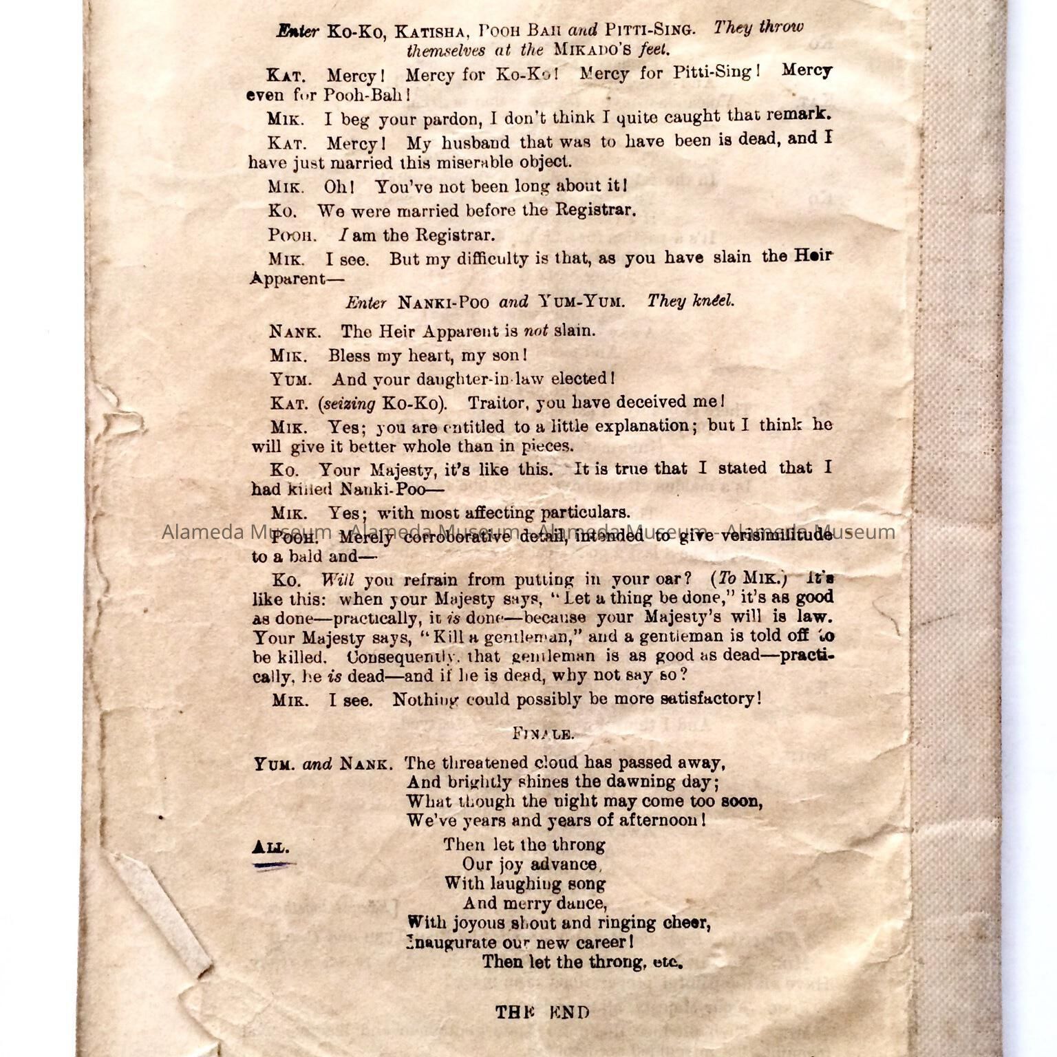 Script for The Mikado, for Alameda High School production, 1931Entry/Object ID