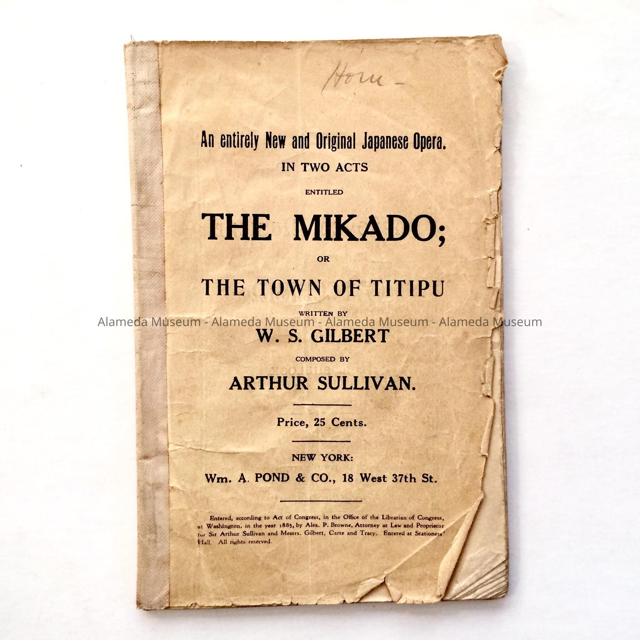 A SCRIPT OF THE PLAY, "THE MIKADO," BY GILBERT AND SULLIVAN," USED FOR THE PRODUCTION PERFORMED BY THE ALAMEDA HIGH SCHOOL'S MUSIC DEPARTMENT, MARCH 26 AND 27, 1931.