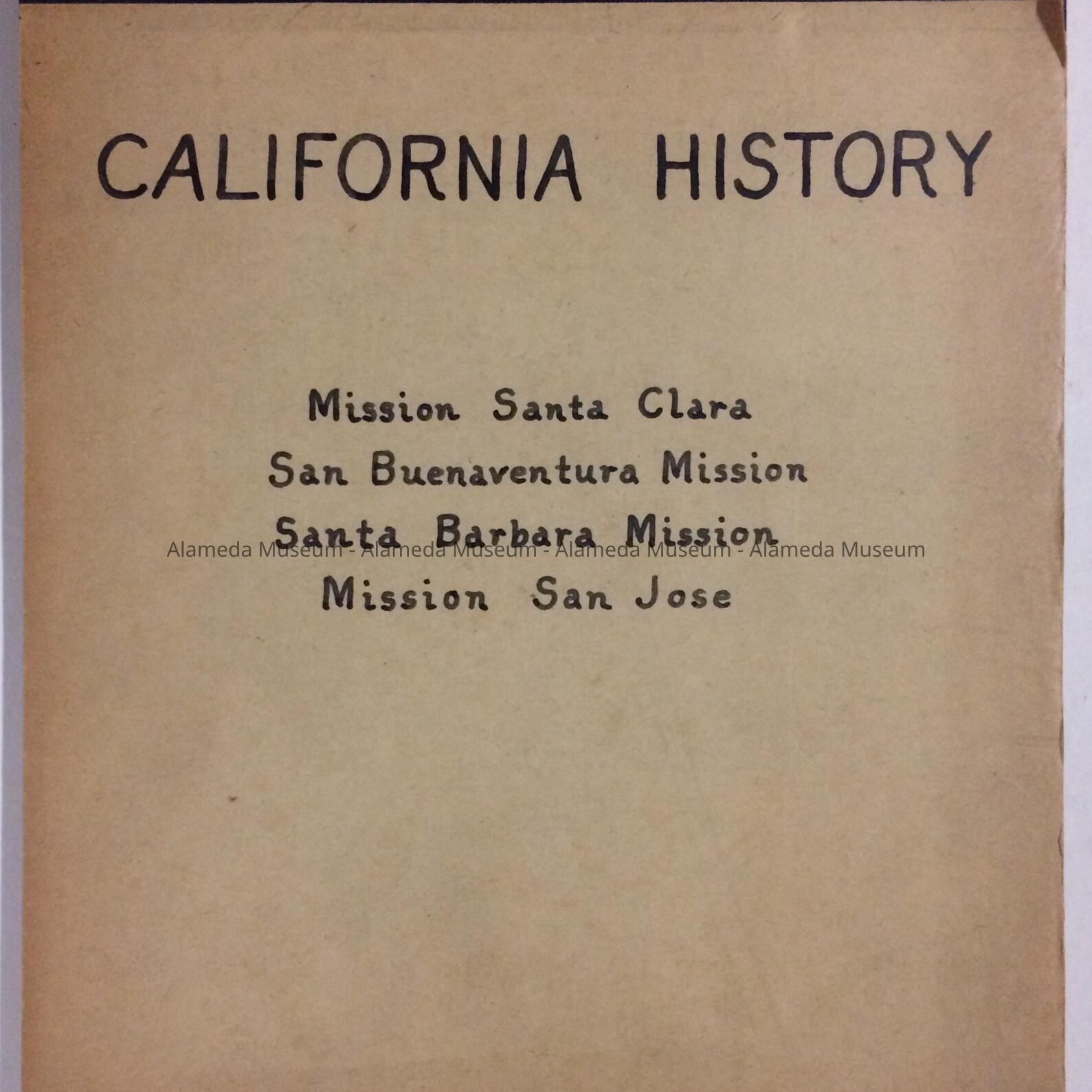 Description: Typewritten script bound under heavy cardboard cover. Cover caption hand-written in block letters “California History."