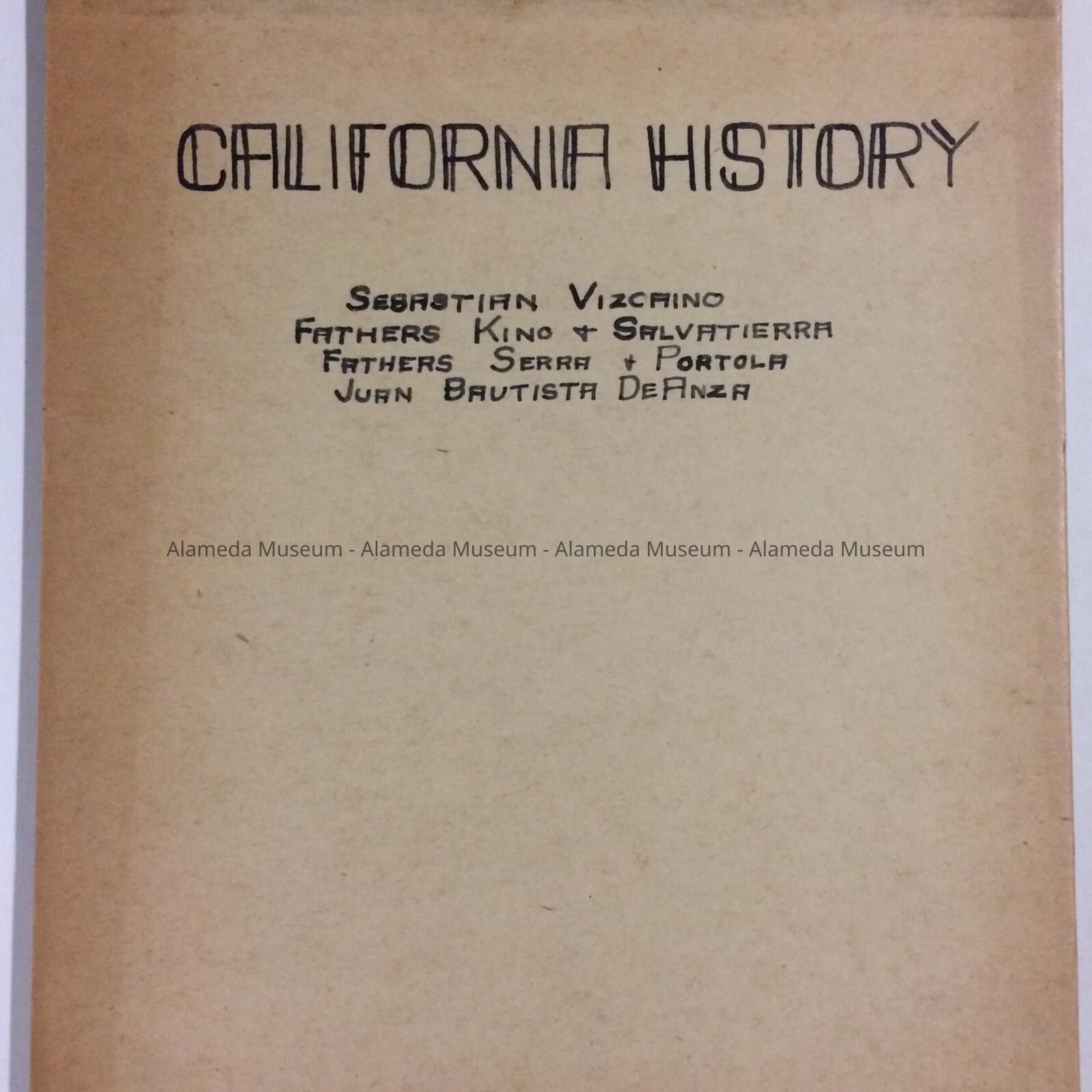 Typewritten script bound under heavy cardboard cover. Cover caption hand written in block letters "California History."