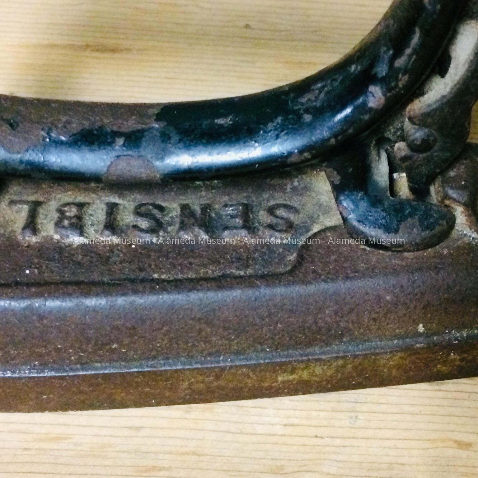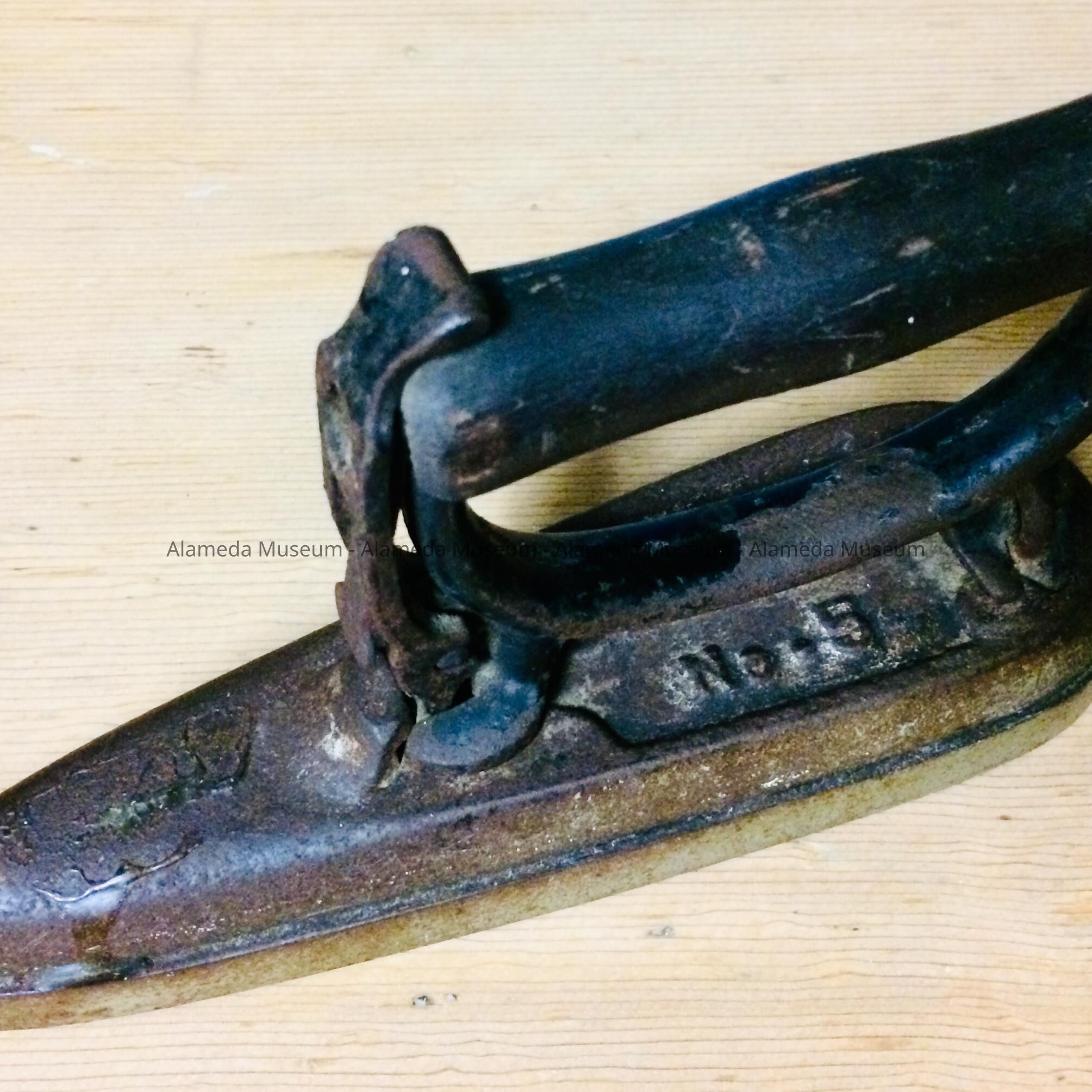 Sad-iron found at 914 San Antonio Avenue. The home was erected in 1897 for Wm. H. Armitage (architect) as his private residence. The sad-iron was used for ironing sleeves.