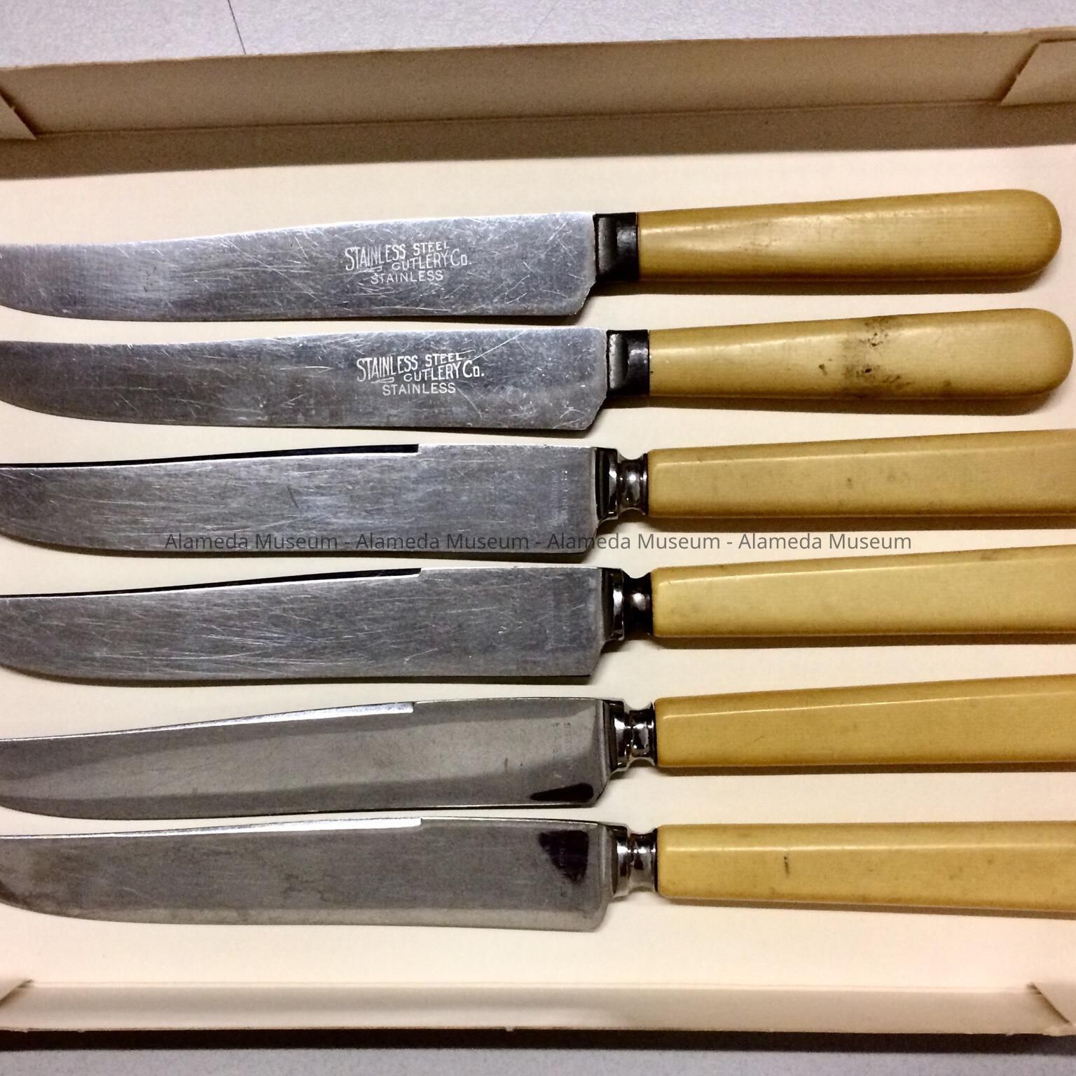History of Object: Dinner knives that originally belonged to George & Bertha Masters, proprietors & owners of Sunny Cove Beach, Alameda, California.