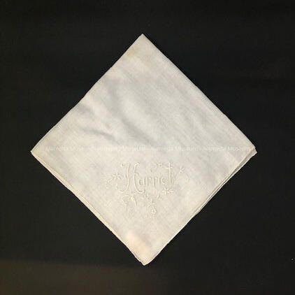 Handkerchiefs presumably belonging to Harriet Holmes Haslett since many have her initials or her name in full.