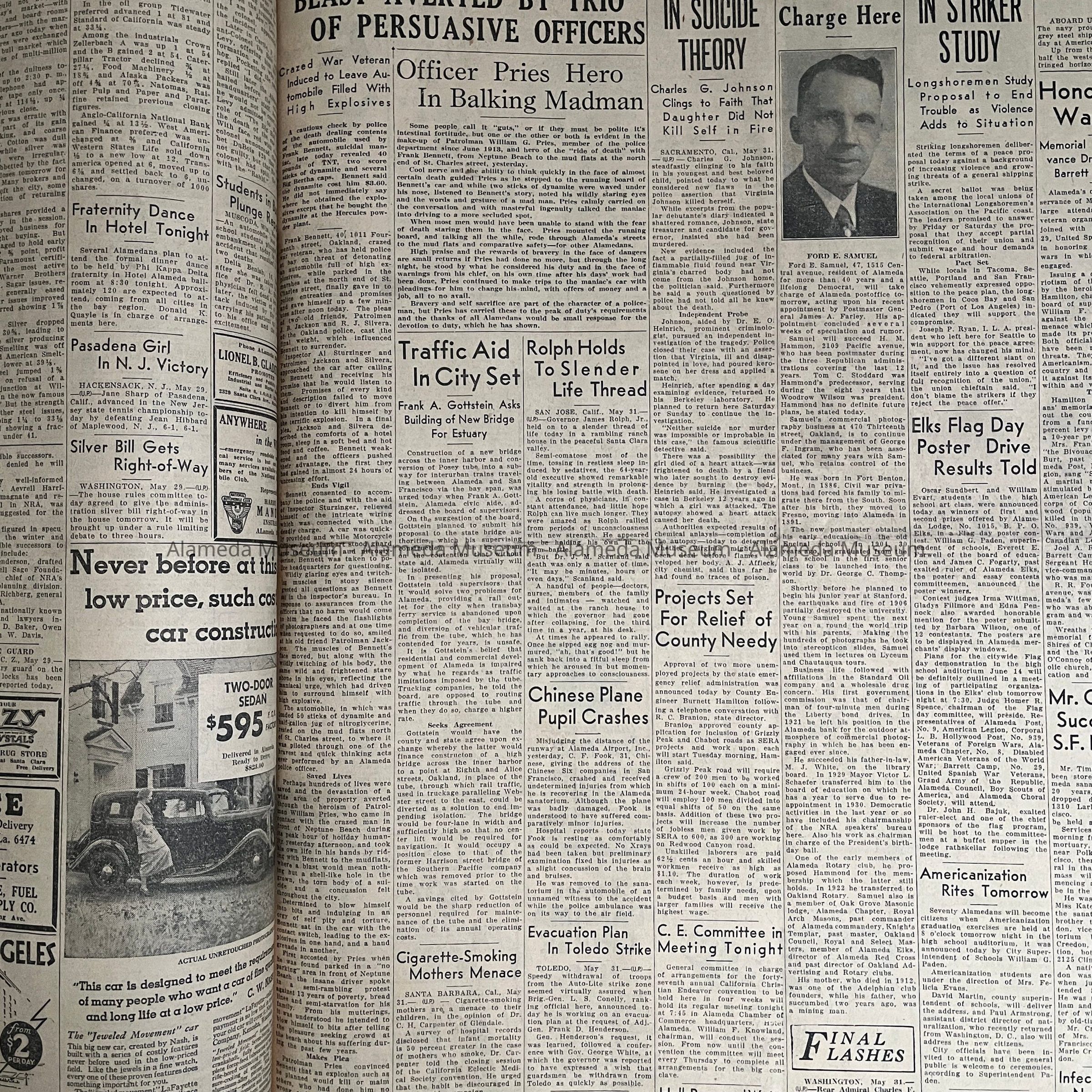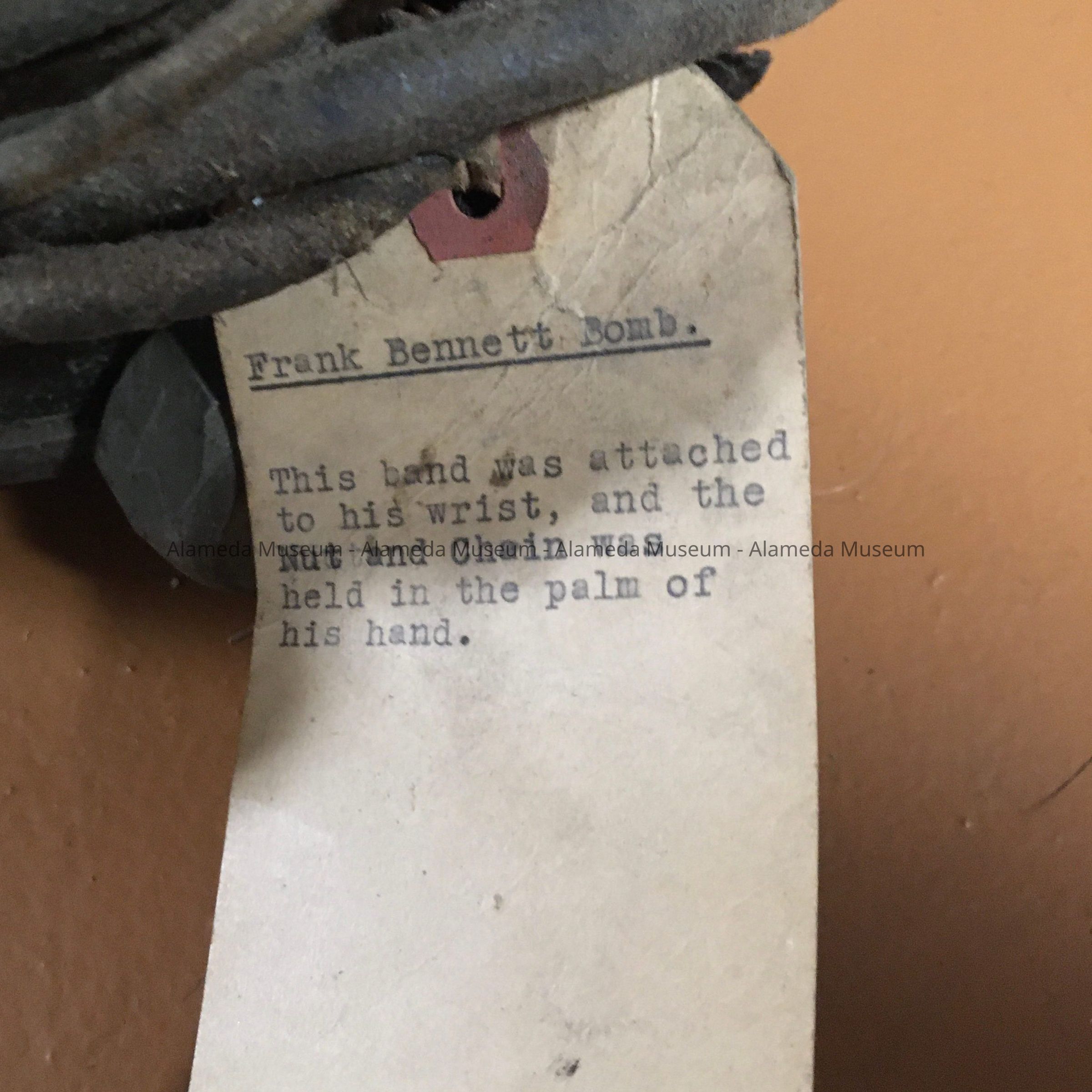 History of Object: Shrapnel bomb made by Frank Bennett, which he, despondent about being laid off and tired of being poor, intended to suicide-explode on Memorial Day, May 30, 1934, in front of the Neptune Beach entrance. The plans were averted by police officer William Pries.