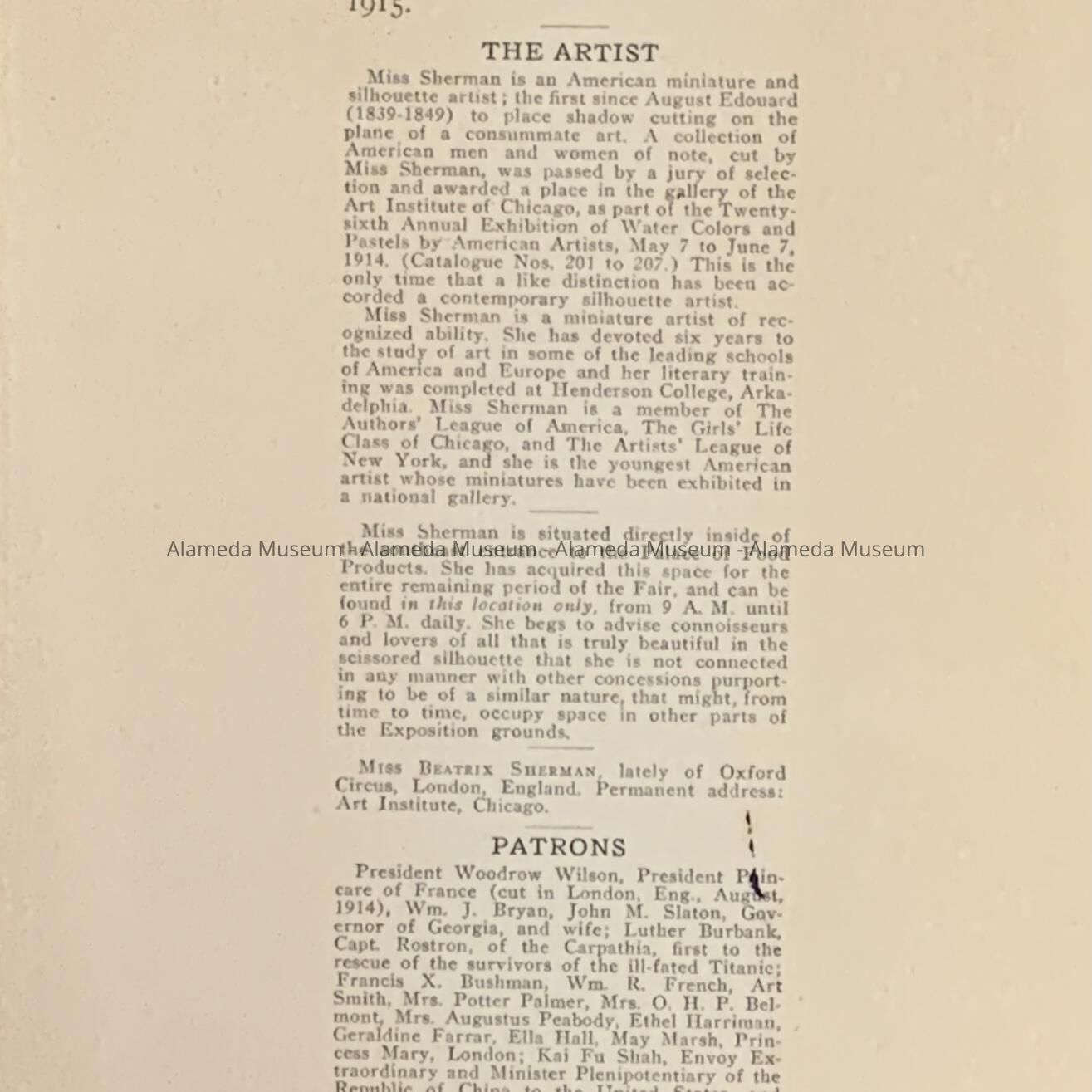 Silhouette of Eleanor D. Clark, by Beatrix Sherman, Panama Pacific Exposition, 1915Entry/Object ID