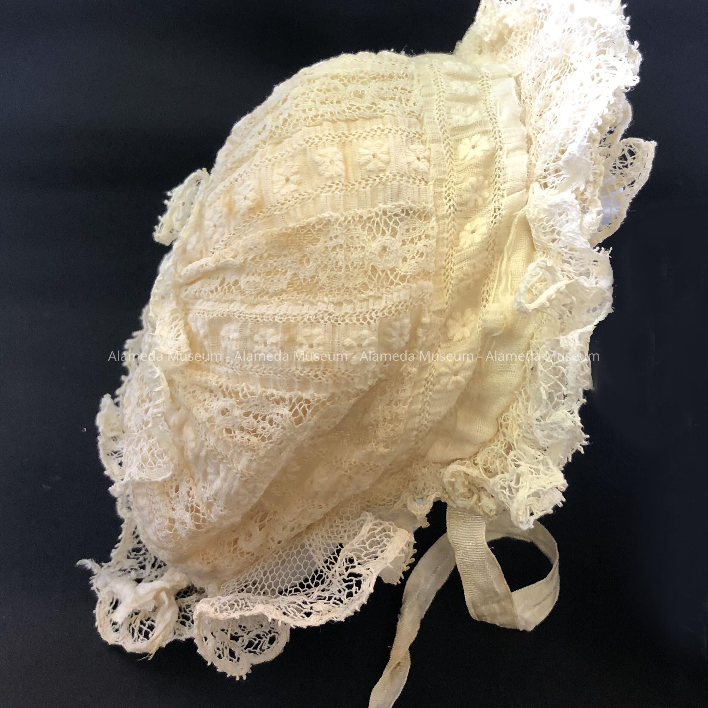 BABY BONNET WORN BY A MEMBER OF THE EISFELDT FAMILY, EARLY RESIDENTS OF ALAMEDA, CA.