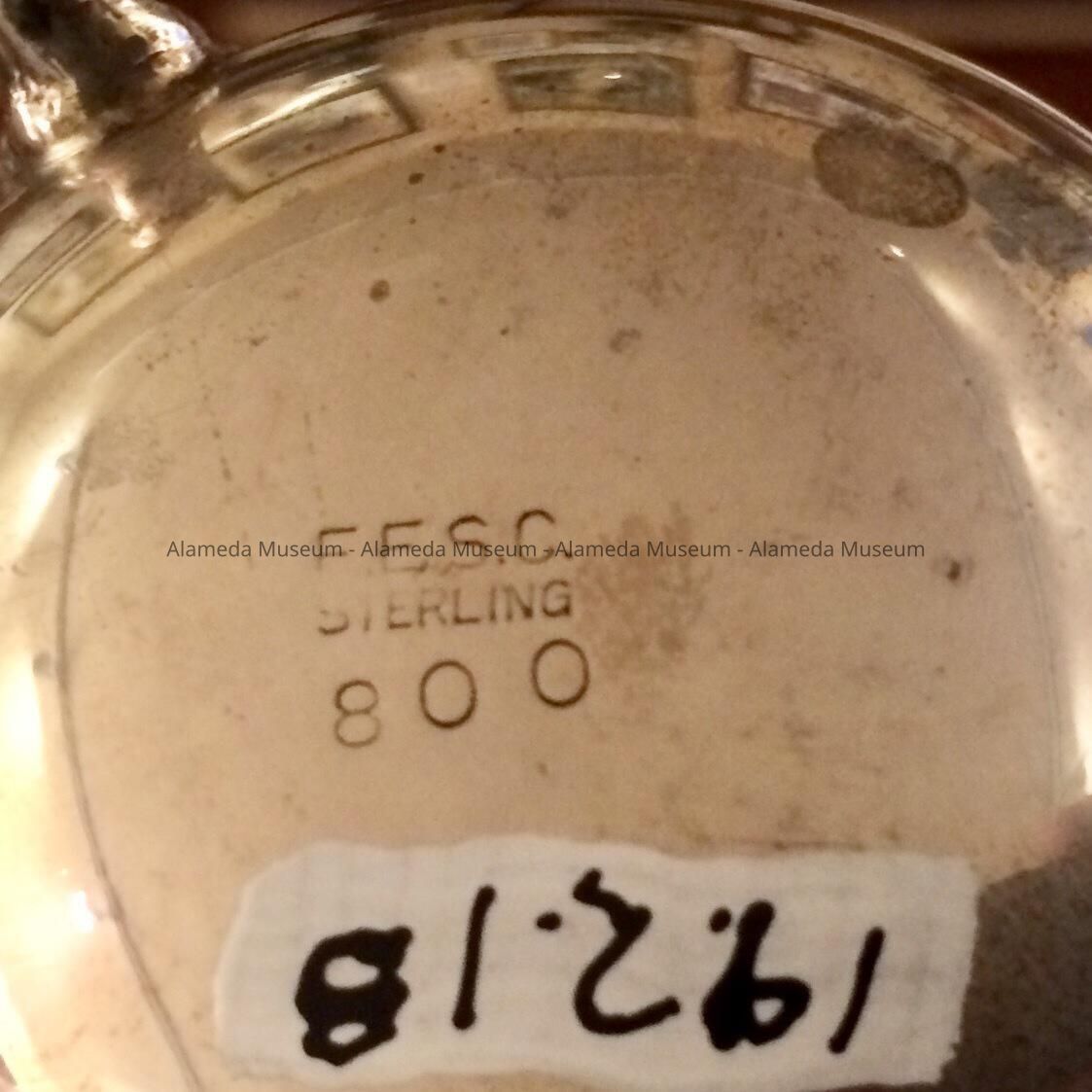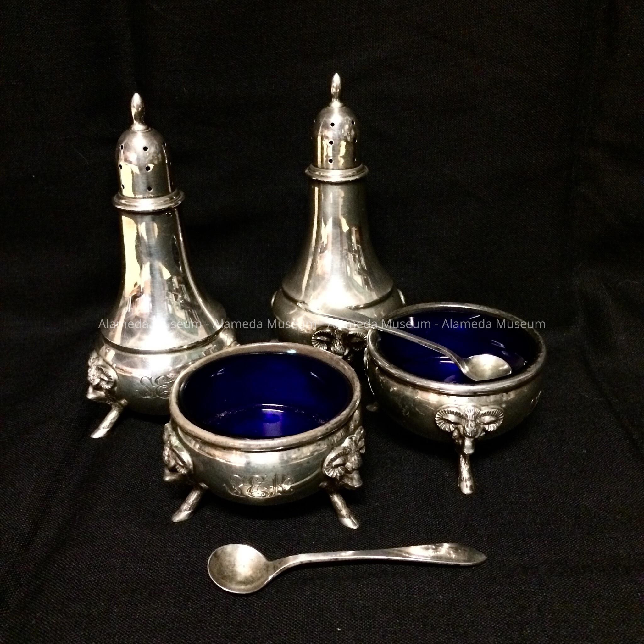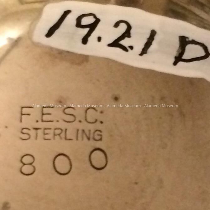 History of Object: All pieces are engraved with the initials "S.E.K.". They are thought to possibly be wedding gifts of Robert Hermann Krusi (1889-1945), son of Hermann Krusi, prominent Alameda resident. (Additional research needed here.)