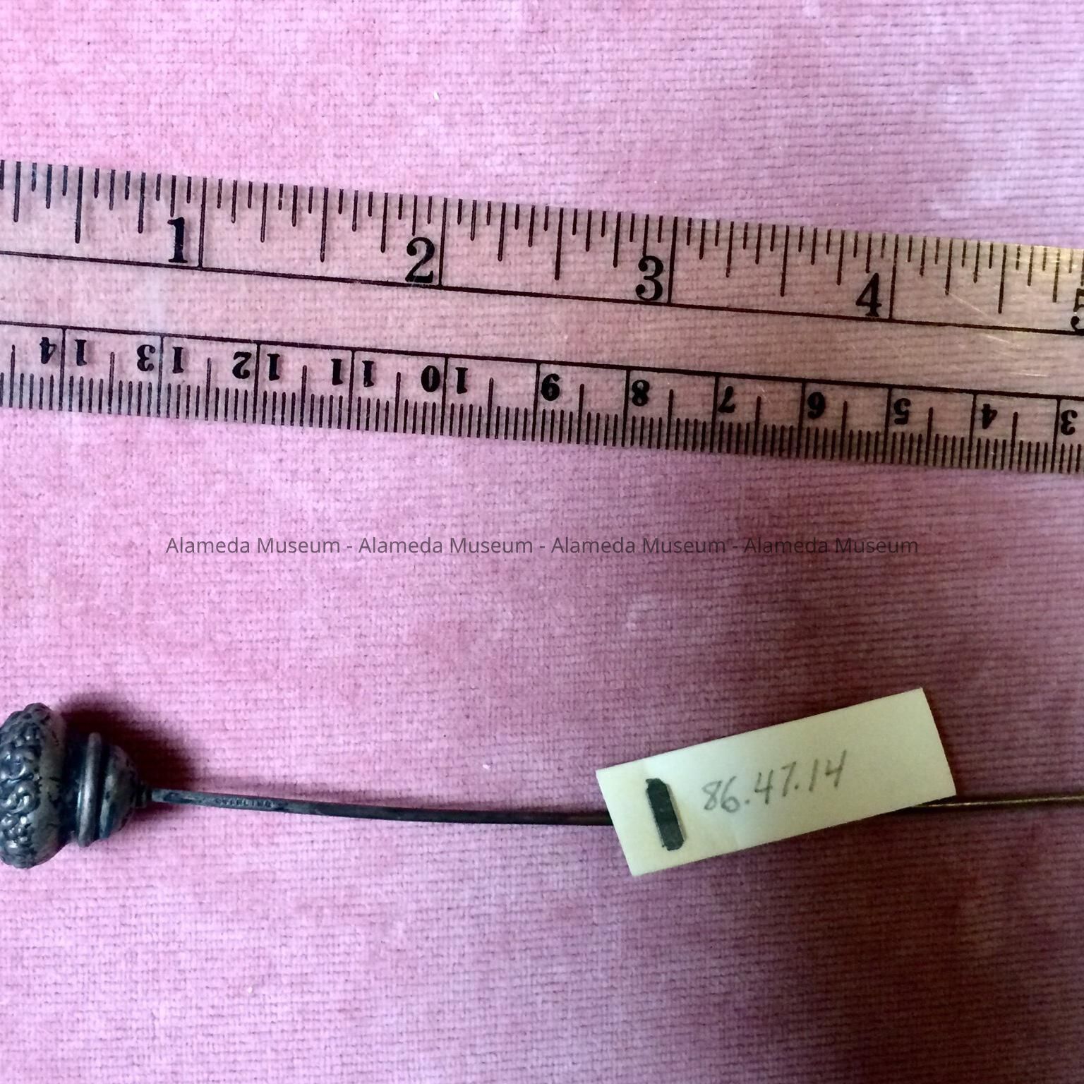 History of Object: Sterling silver hat pin that belonged to Mrs. Henry H. Meyers, old-time resident of Alameda (and mother of the donor).
