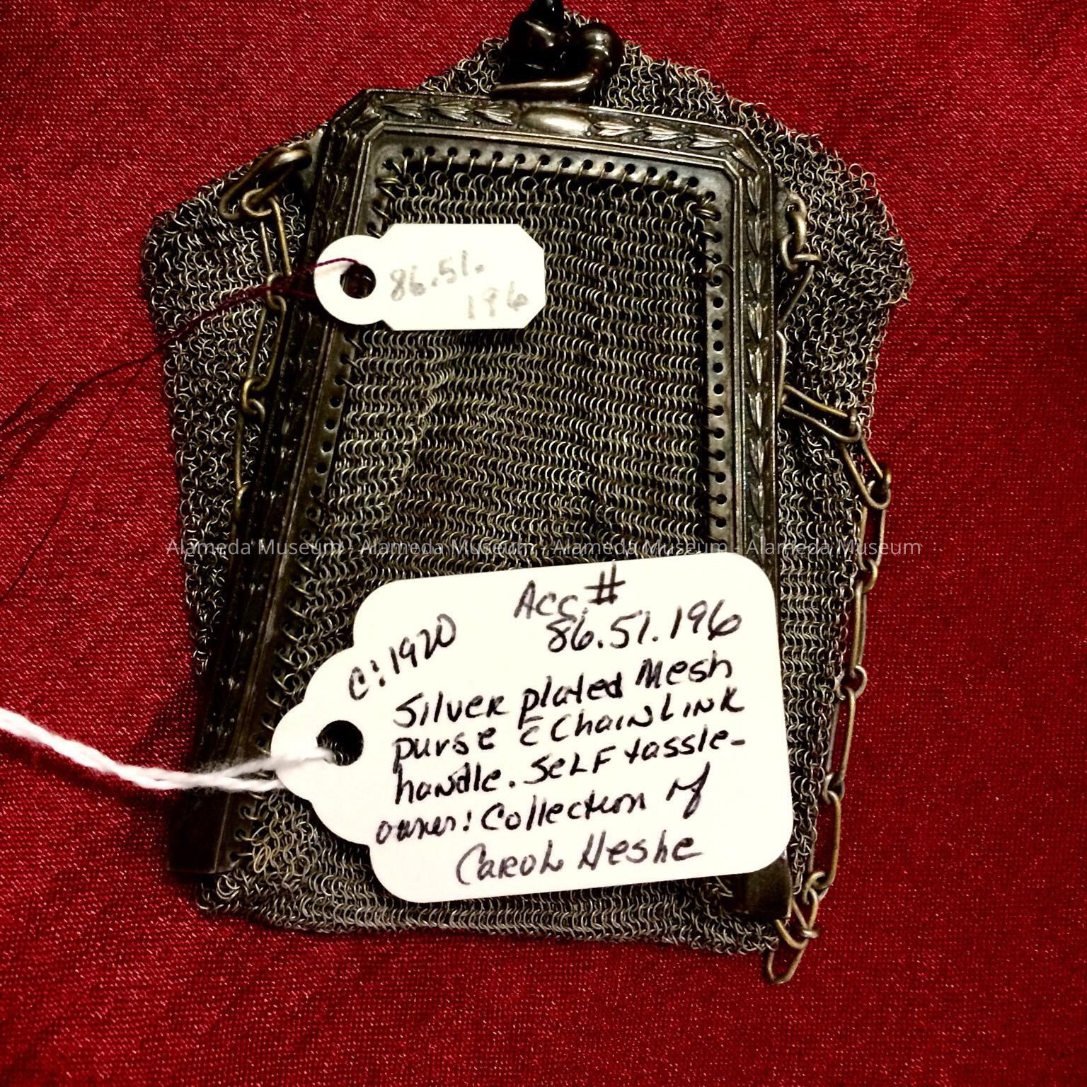 Silver plated mesh purse c chainlink handle. Self tassle. owner: Collection of Carol Heche