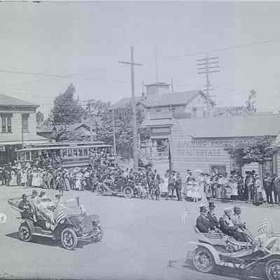 The negatives show cars, clothing and buildings from the period. some of the buildings still exist.