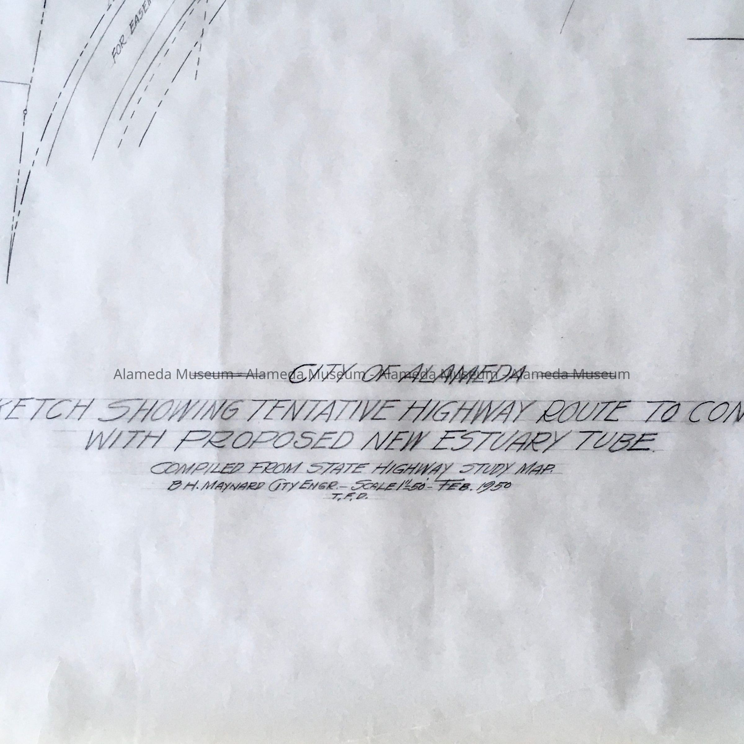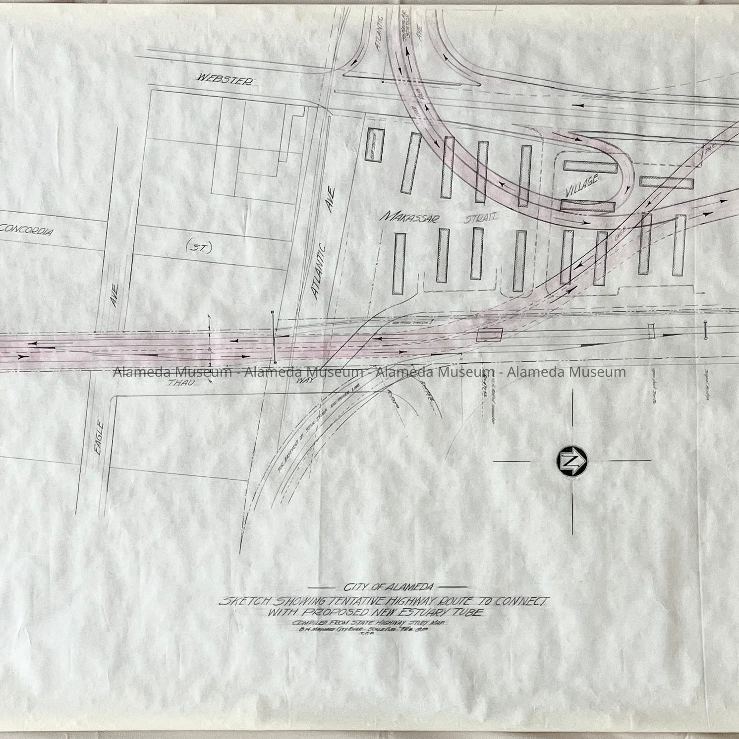 MAP COMPILED FROM STATE HIGHWAY STUDY MAP; B H MAYNARD, CITY ENGINEER, CITY OF ALAMEDA, DATED FEBRUARY, 1950. MAP DISPLAYS PROPERTY NEAR WEBSTER STREET, BOUNDED BY LINCOLN AND ATLANTIC AVENUES.
