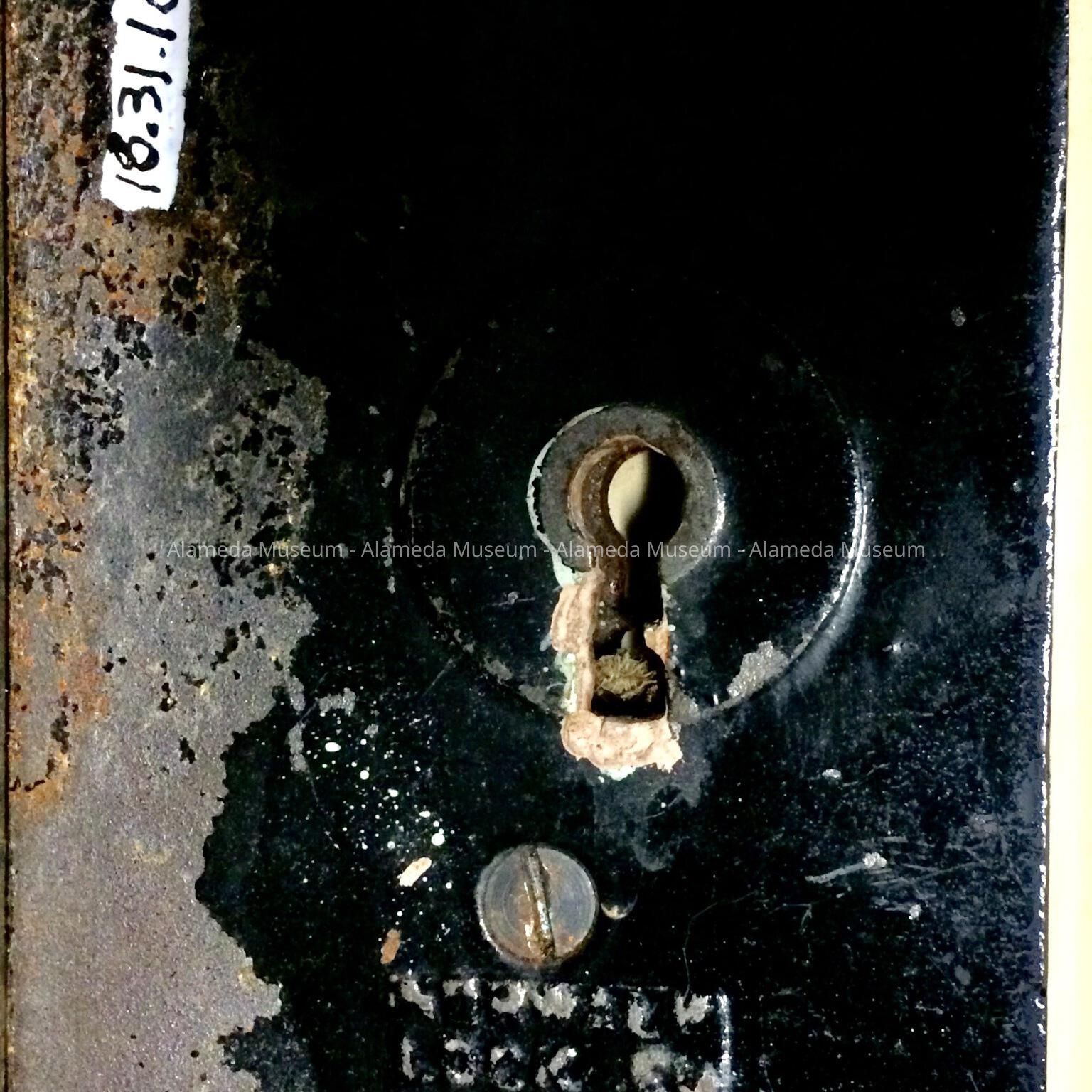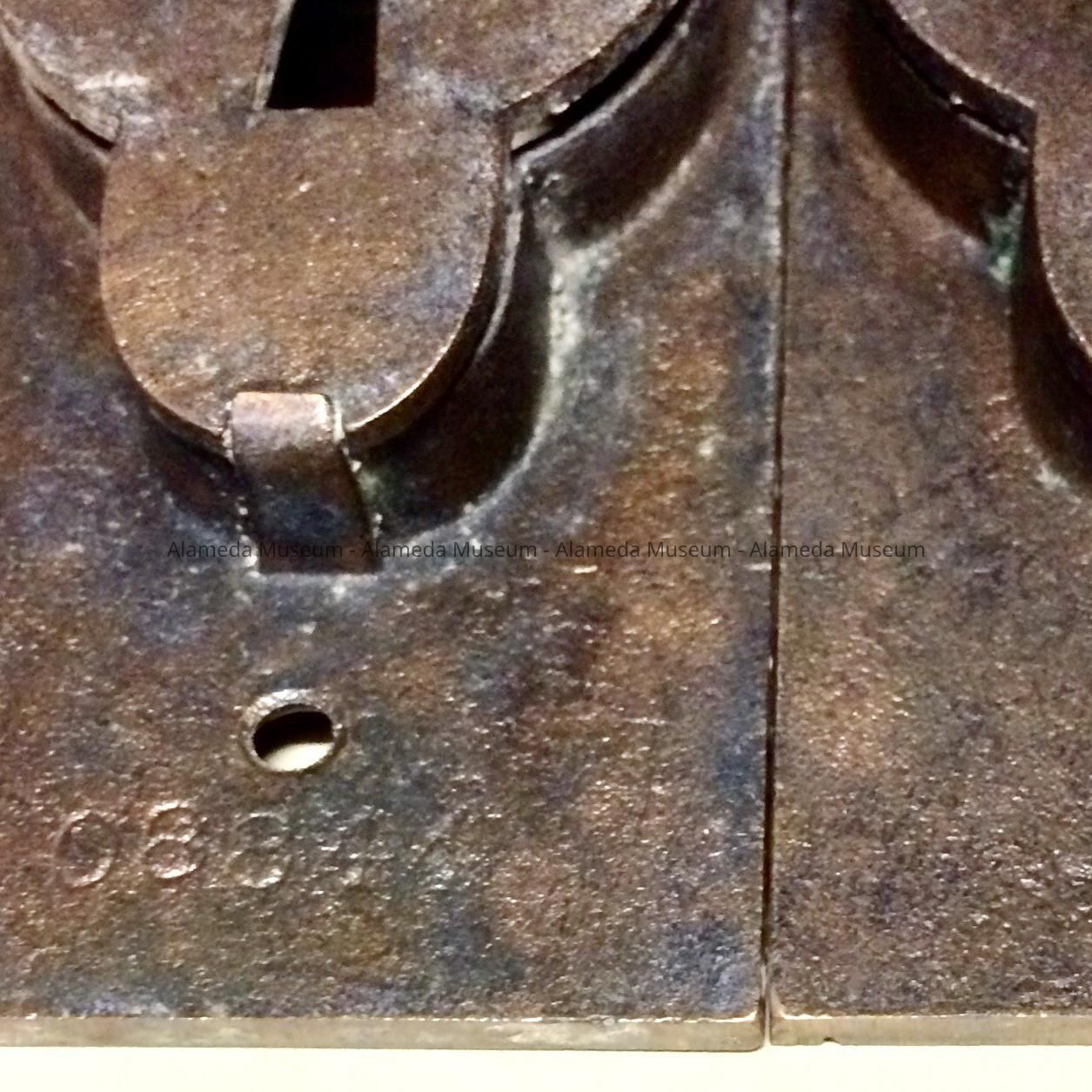 History of Object: This hardware came from a pocket door located at 1567 Pacifiic Avenue, an Italianate-style residence standing as early as 1885. An early owner, (1885-1896), was Herman Dreist. The donor states that the doors were being thrown out in 1995 and that he managed to save this hardware.