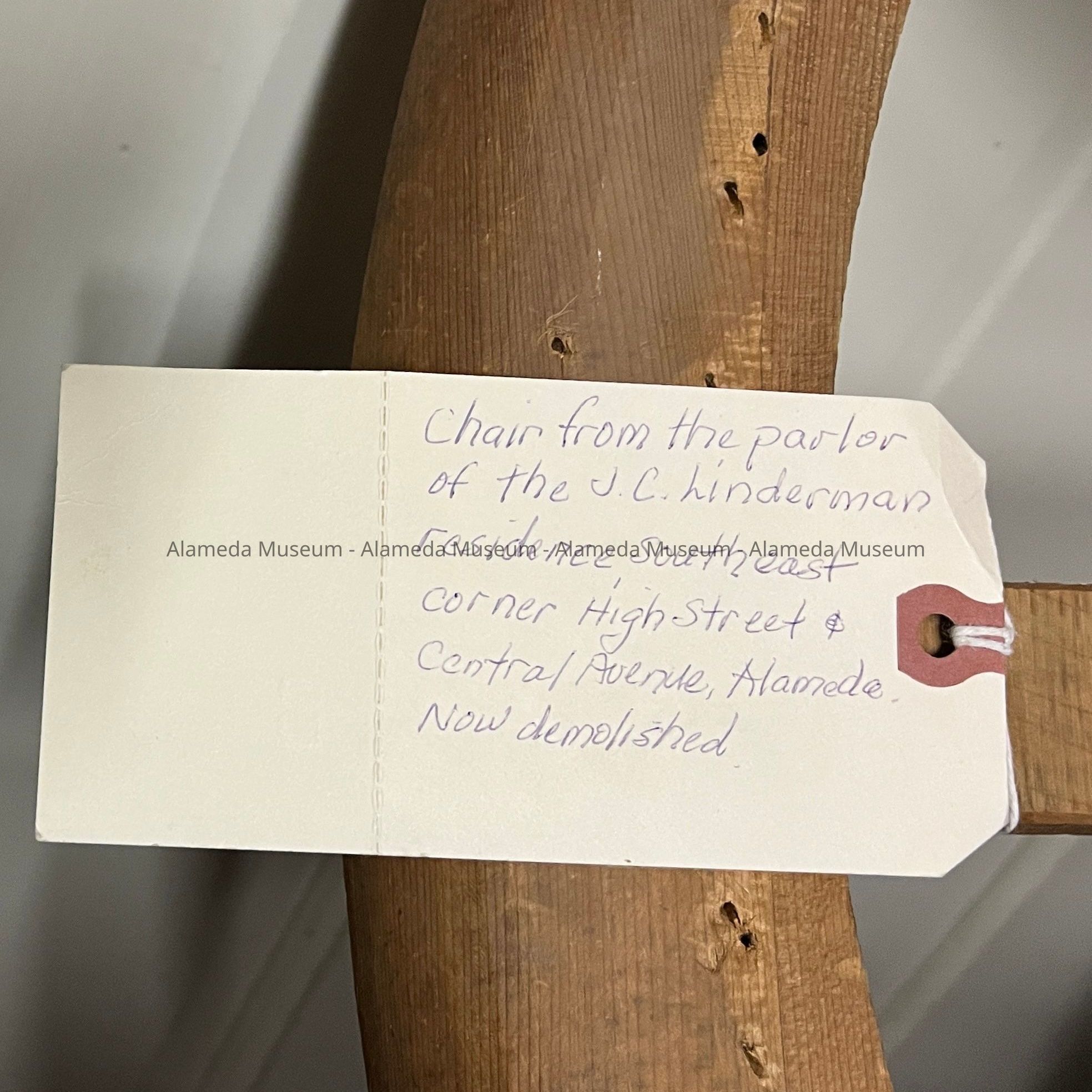 HISTORY OF OBJECT: PARLOR CHAIR THAT BELONGED TO MRS. J. C. LINDERMAN, GRANDMOTHER OF THE LATE MABEL LINDERMAN KOLLMYER. THE LINDERMAN HOME WAS LOCATED AT SOUTHEAST CORNER OF CENTRAL AVENUE AND HIGH STREET, SINCE DEMOLISHED.
