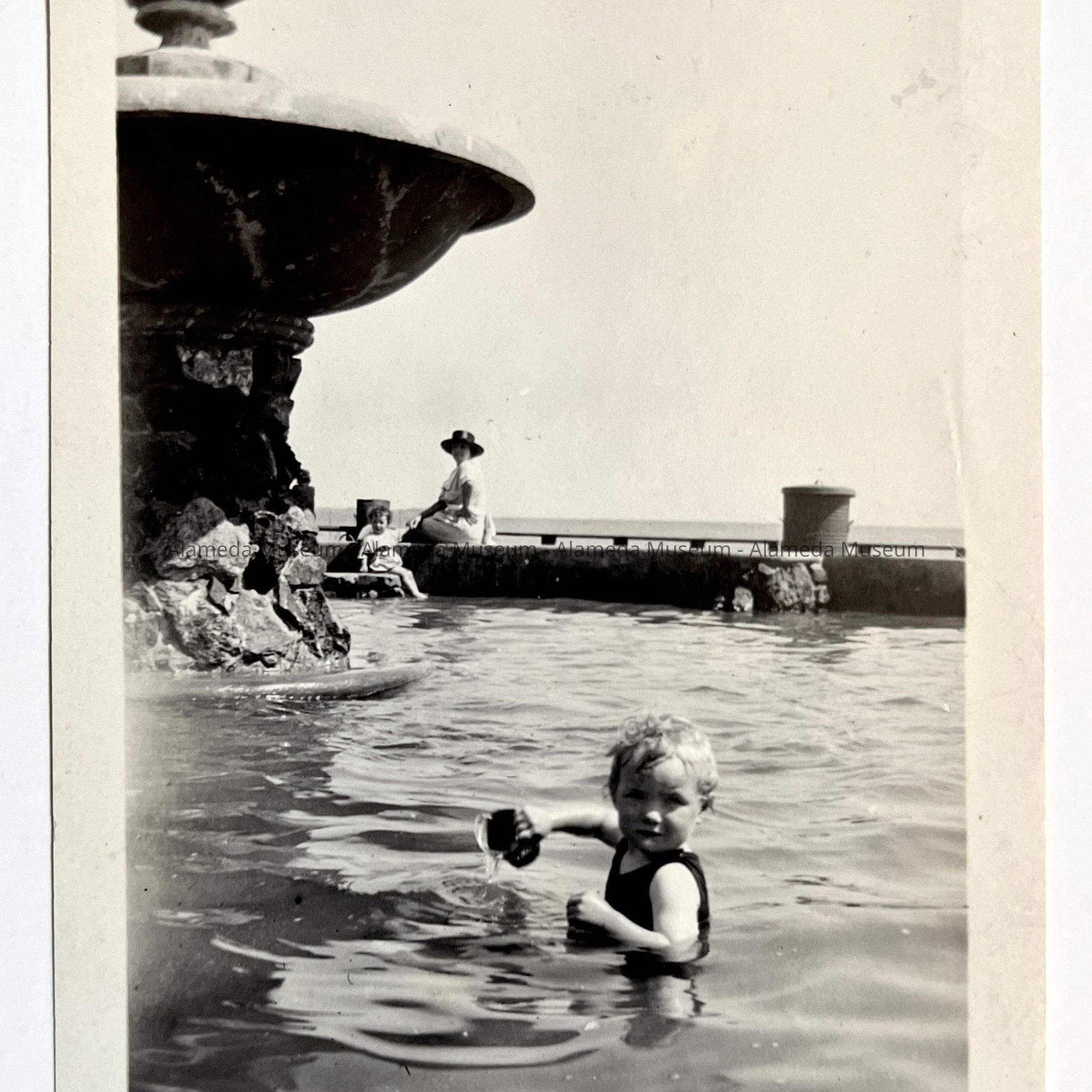 Snapshot photo fo Betty Matthiesen Cogliati in a wading pool, Neptune Beach, c. 1920sEntry/Object ID