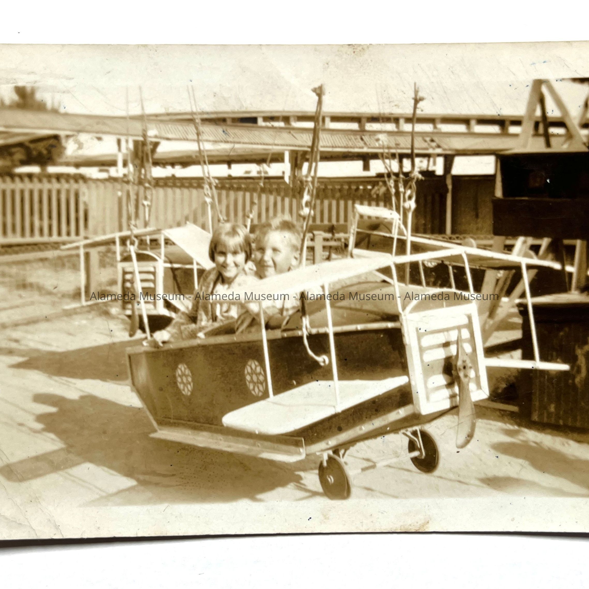 History of Object: A snapshot depicting Gordon McBride and an unidentified playmate on the airplane ride, Neptune Beach. Dated June, 1930 on the verso.