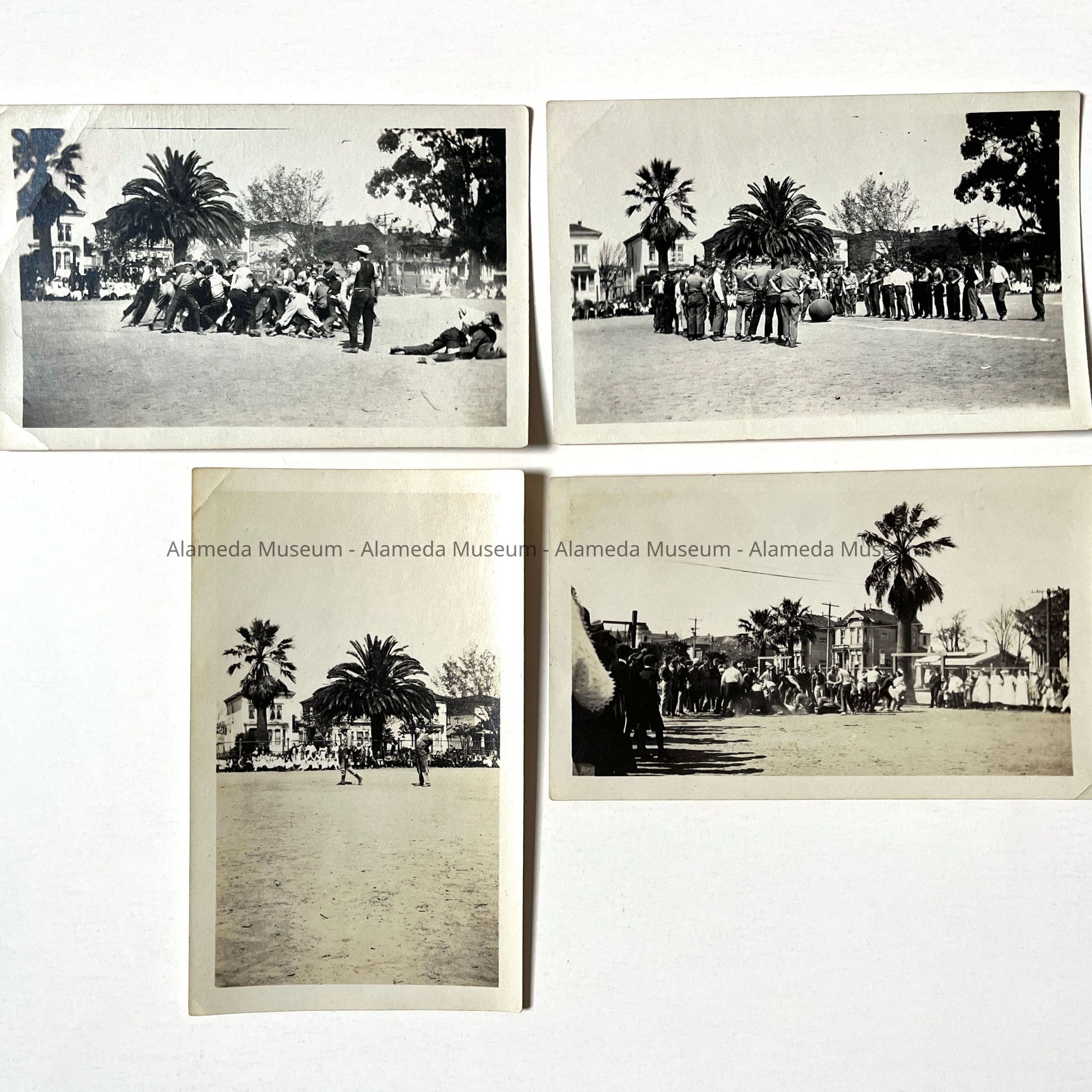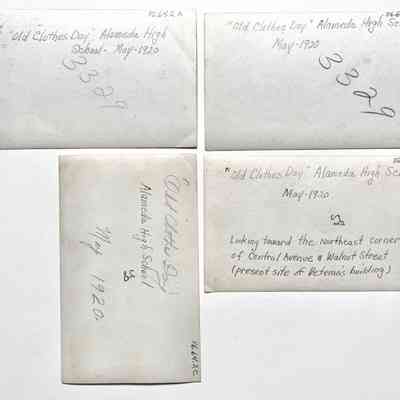 History of Object: Series of 4 snapshot photographs depicting "Old Clothes Day", Alameda High School, 1920.