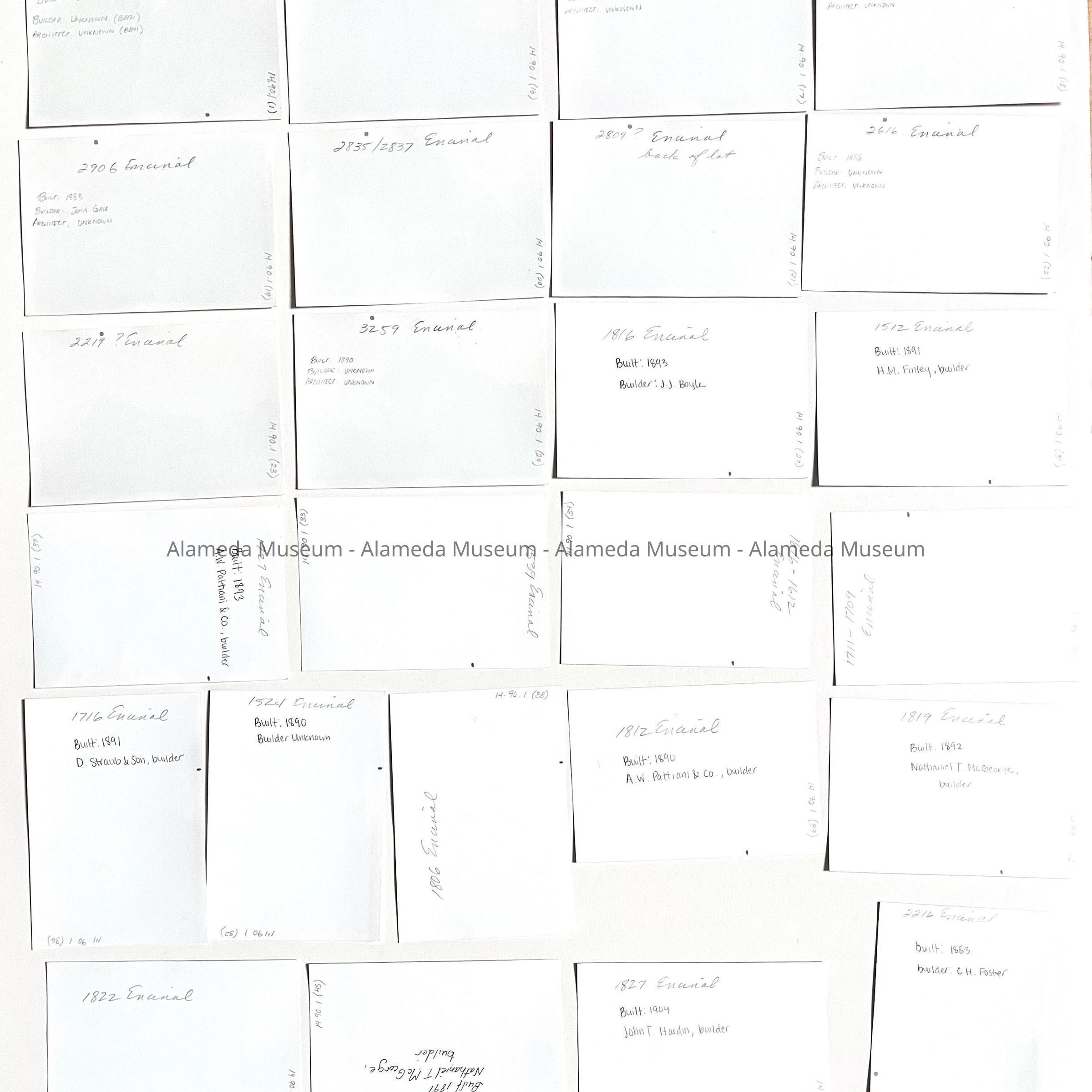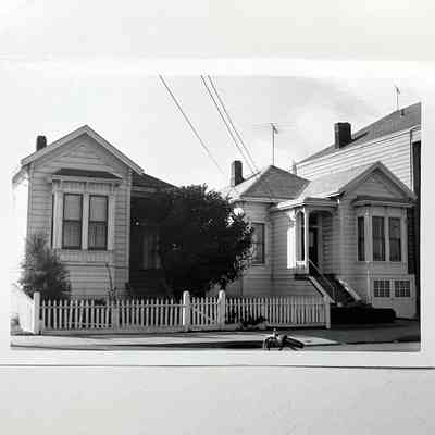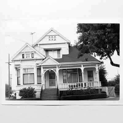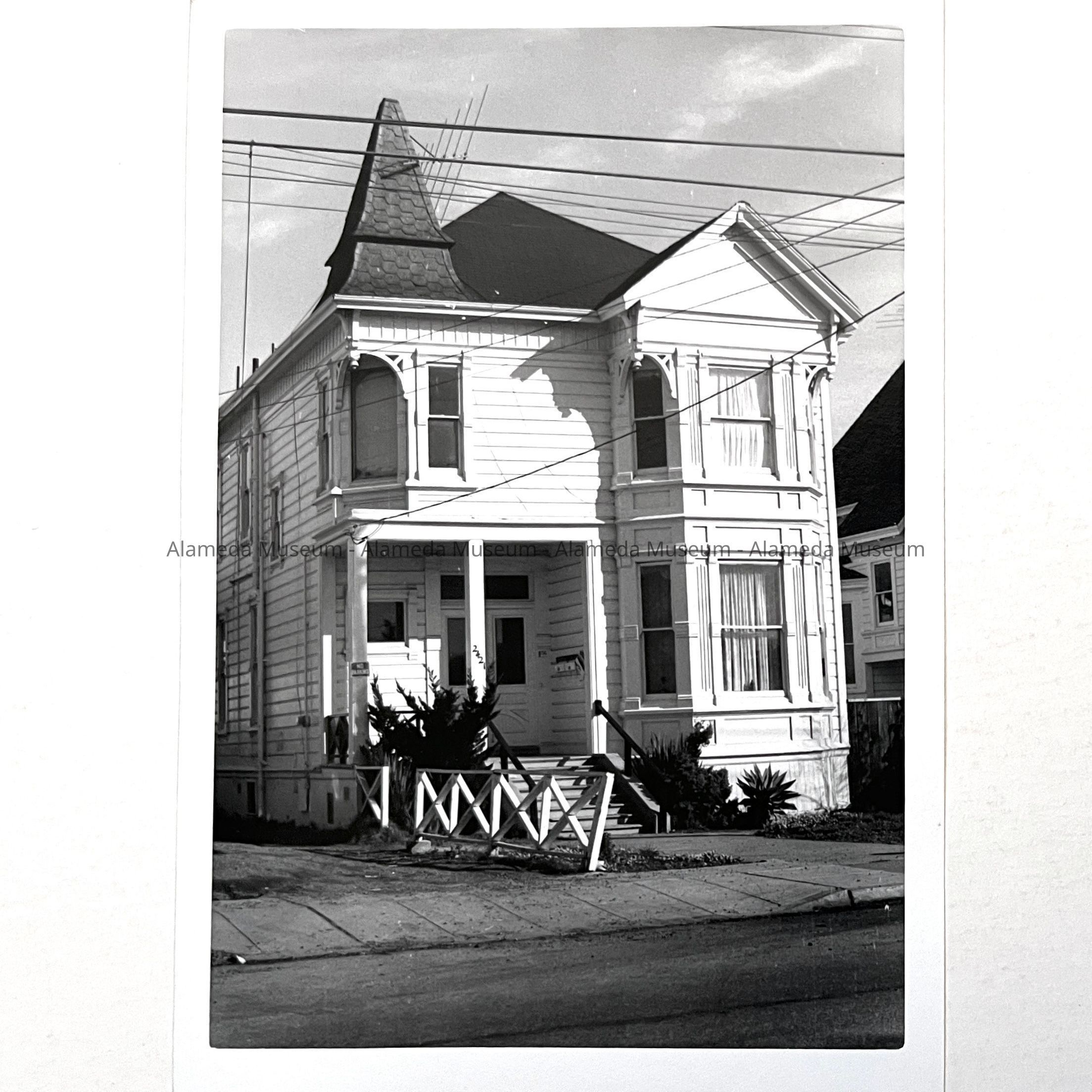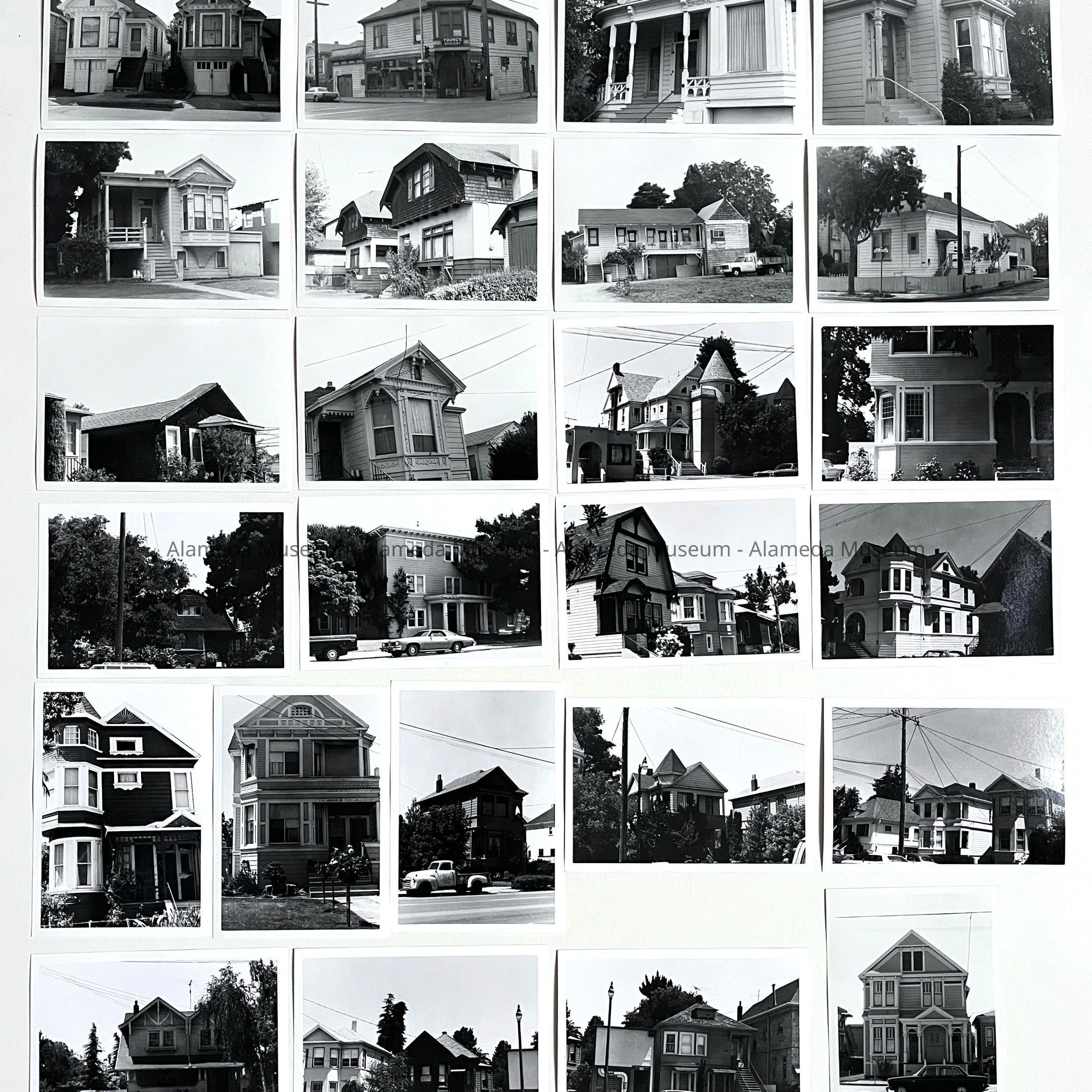 A SERIES OF PHOTOS THAT APPEAR TO HAVE BEEN TAKEN BY THE SAME PERSON OF BUILDINGS (MOSTLY VICTORIAN HOUSES) IN ALAMEDA.