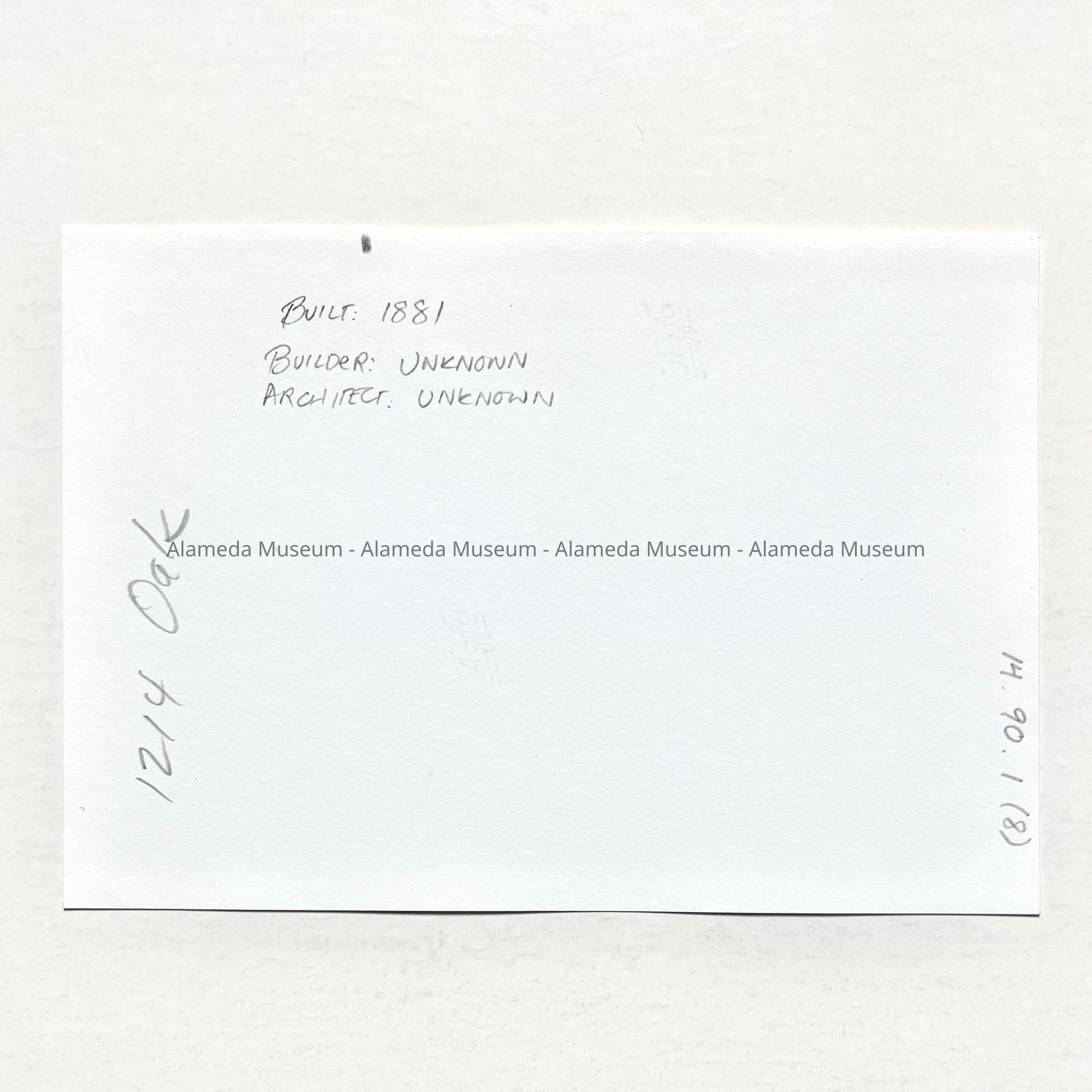 8: 1214 Oak Street, built 1881, builder unknown, architect unknown.