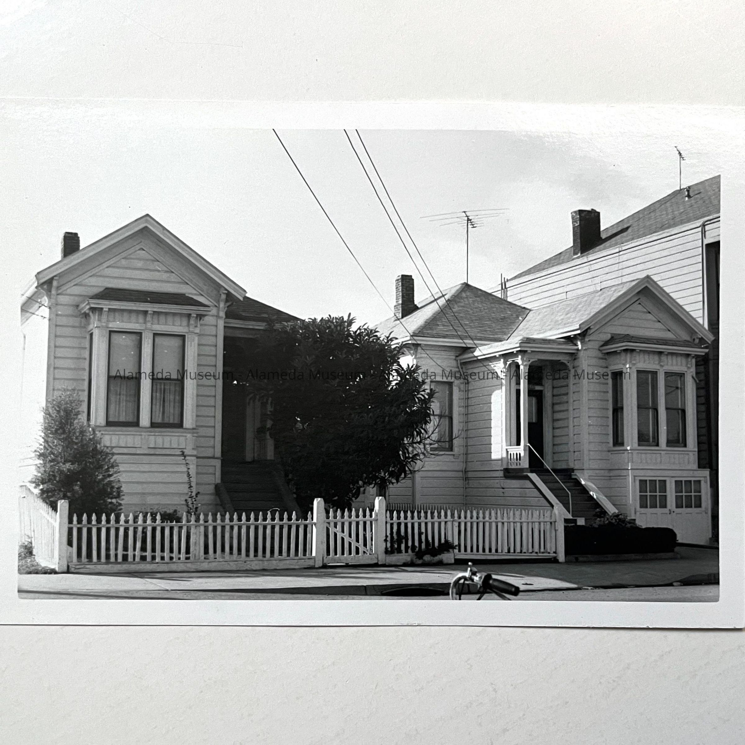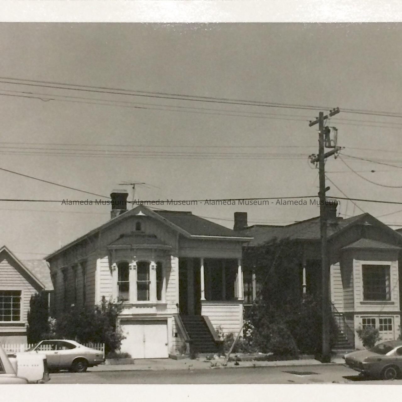 7: Oak Street, west side of Oak between Encinal and Alameda Ave. The homes were demolished in the 1970s for the new Alameda High School expanded campus. They date from the mid-1880s.