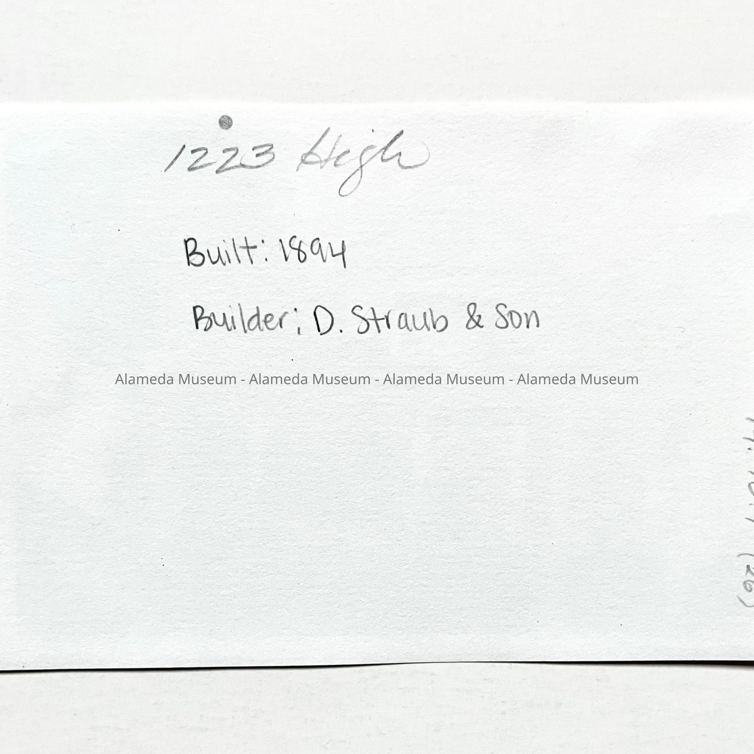 26: 1223 High Street, built 1894, builder D. Straub & Son
