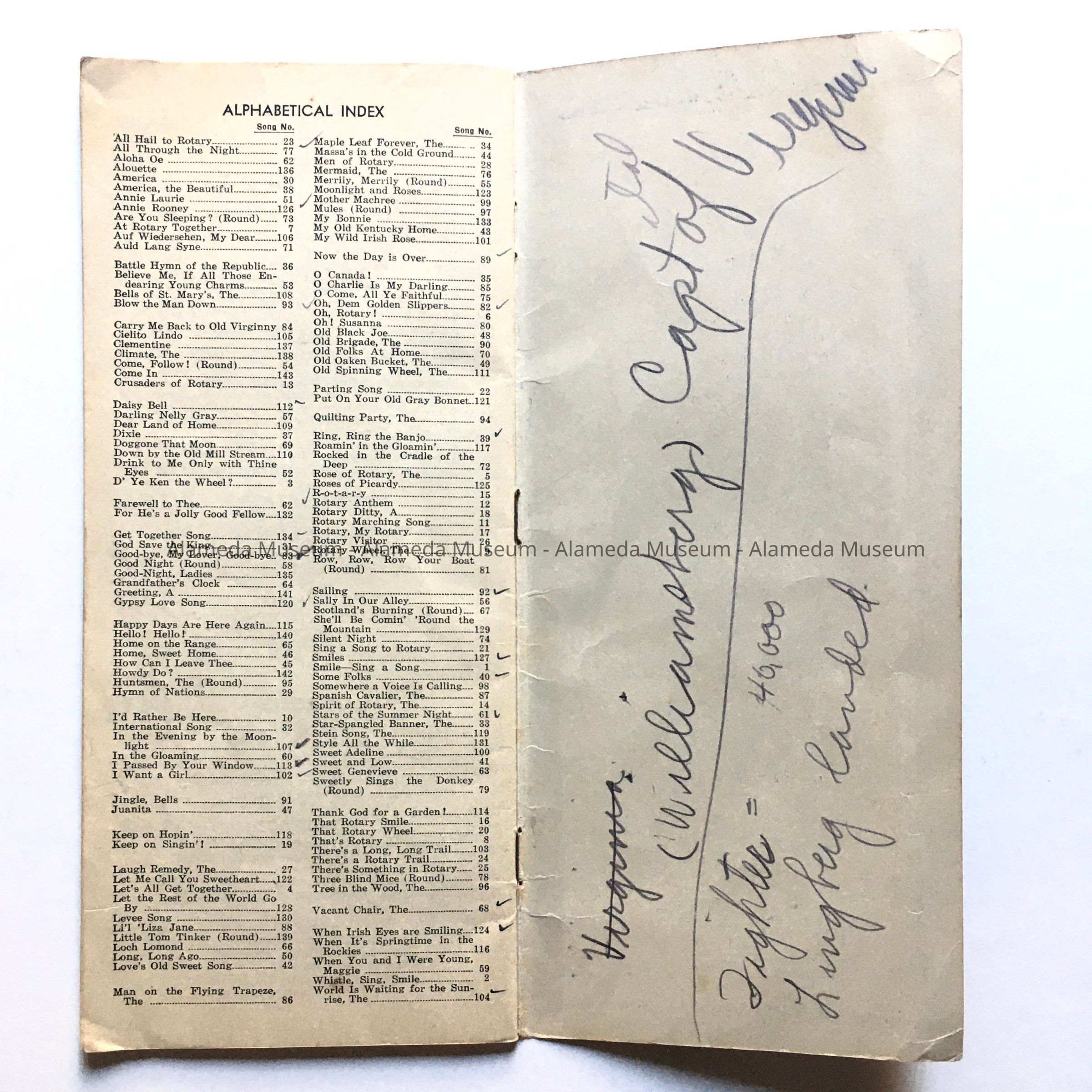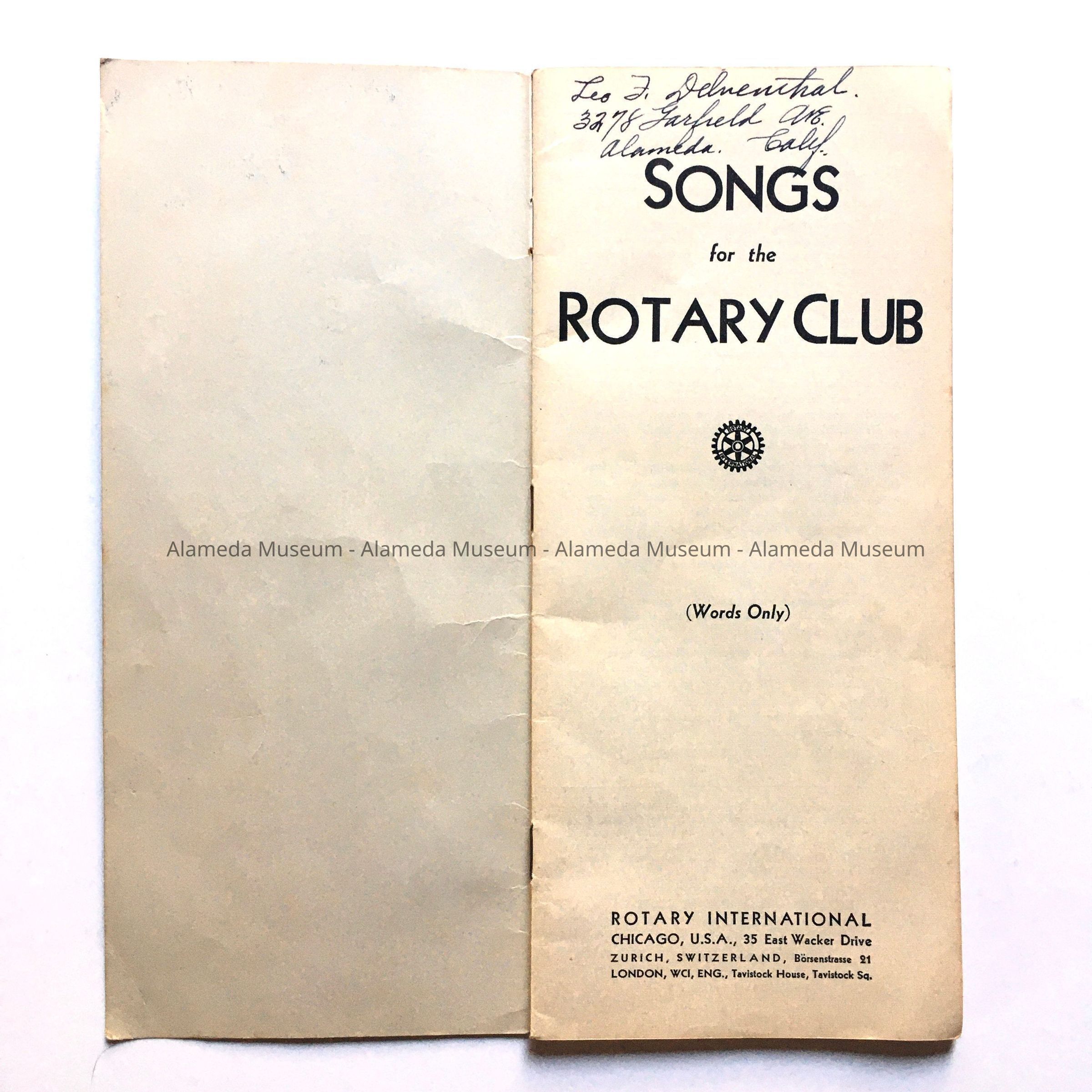History of Object: Songbook of the Rotary Club, at one time owned by Leo J. Delrenthal, 3278 Garfield Ave.