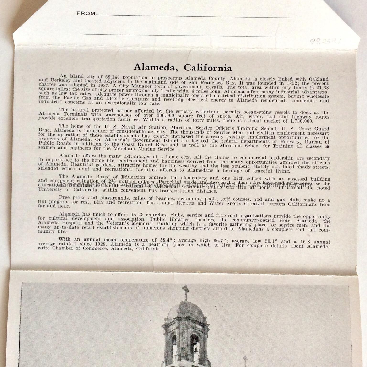 'Souvenir Folder of Alameda, CA', folding postcards in jacket, 1940sEntry/Object ID