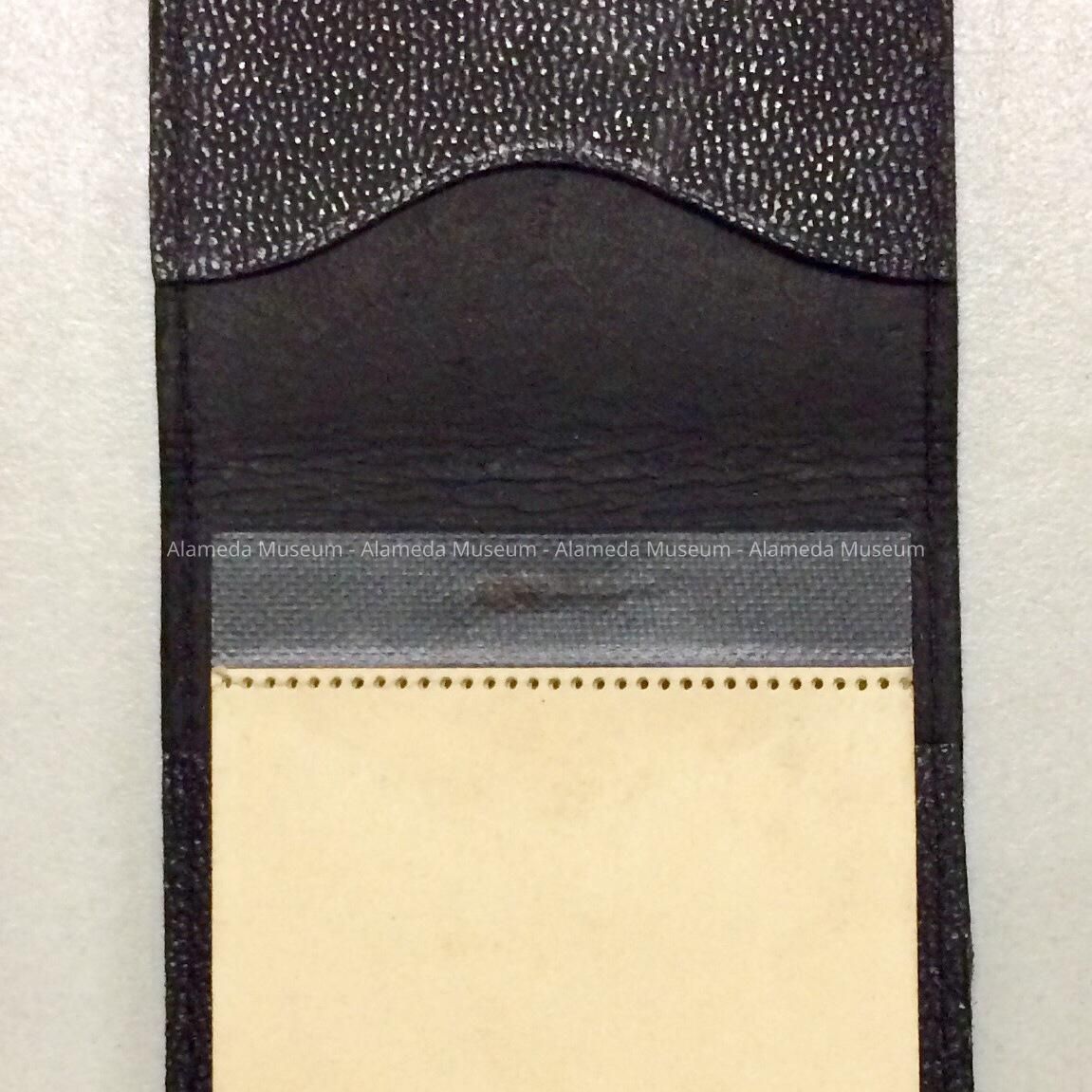 DESCRIPTION: A NOTE PAD WITH COVER OF IMITATION LEATHER IN BLACK-COLORED TRIM IN EMBOSSED BRASS. COVER HAS A LOGO OF THE EASTERN STAR IN GOLD-COLORED TYPE AND THE CAPTION, "CARITA CHAPTER, 1892-1942." ITS INTERIOR HAS THE ORIGINAL PAPER PAD, NEVER USED.