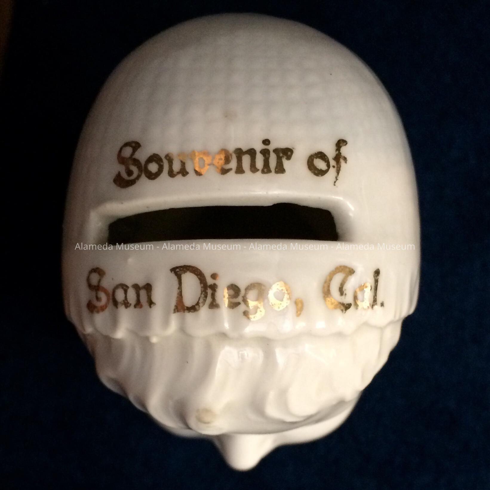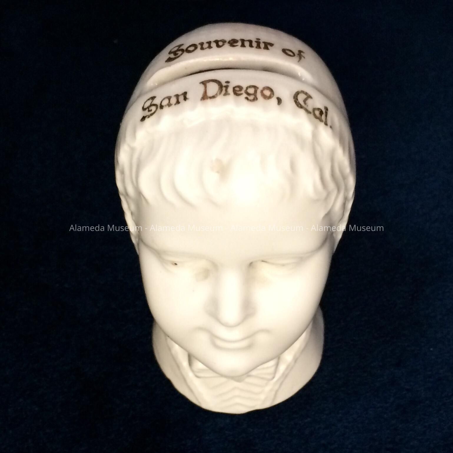 Souvenir of San Diego Porcelain Bank shaped like a head, c. 1890sEntry/Object ID