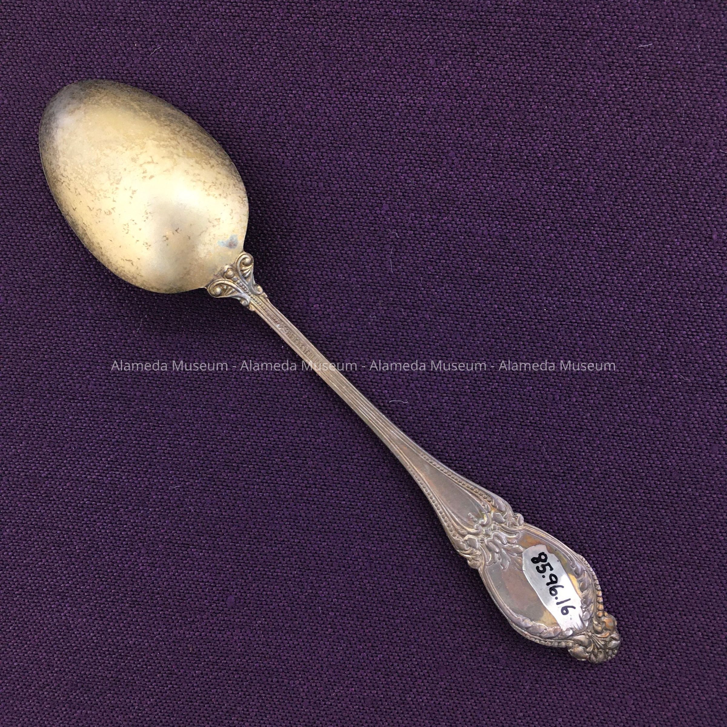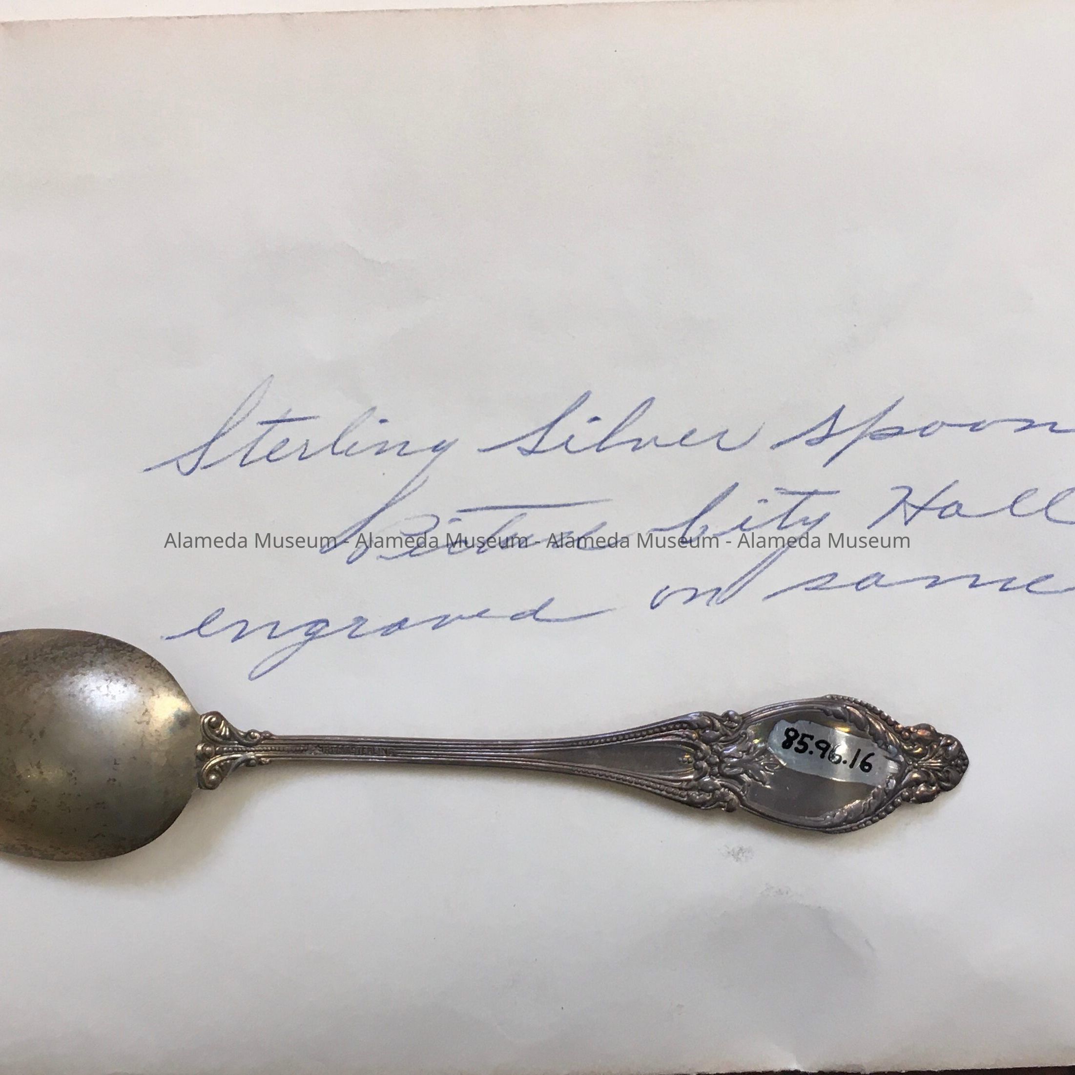 History of Object: Souvenir spoon issued in 1896 for the opening of the Alameda City Hall, Alameda, California. Bowl of spoon possibly engraved by A. O. Gott, Park Street jeweler?