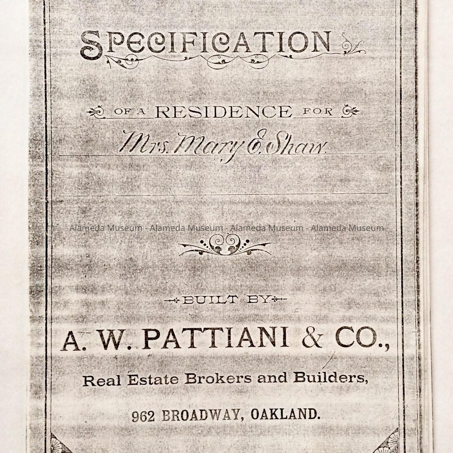 Specification for the construction of a residence for Mary E. Shaw located at 915 Grand Street. Erected 1891 by A.W. Pattiani and Co., architects and builders. The residence is still standing.