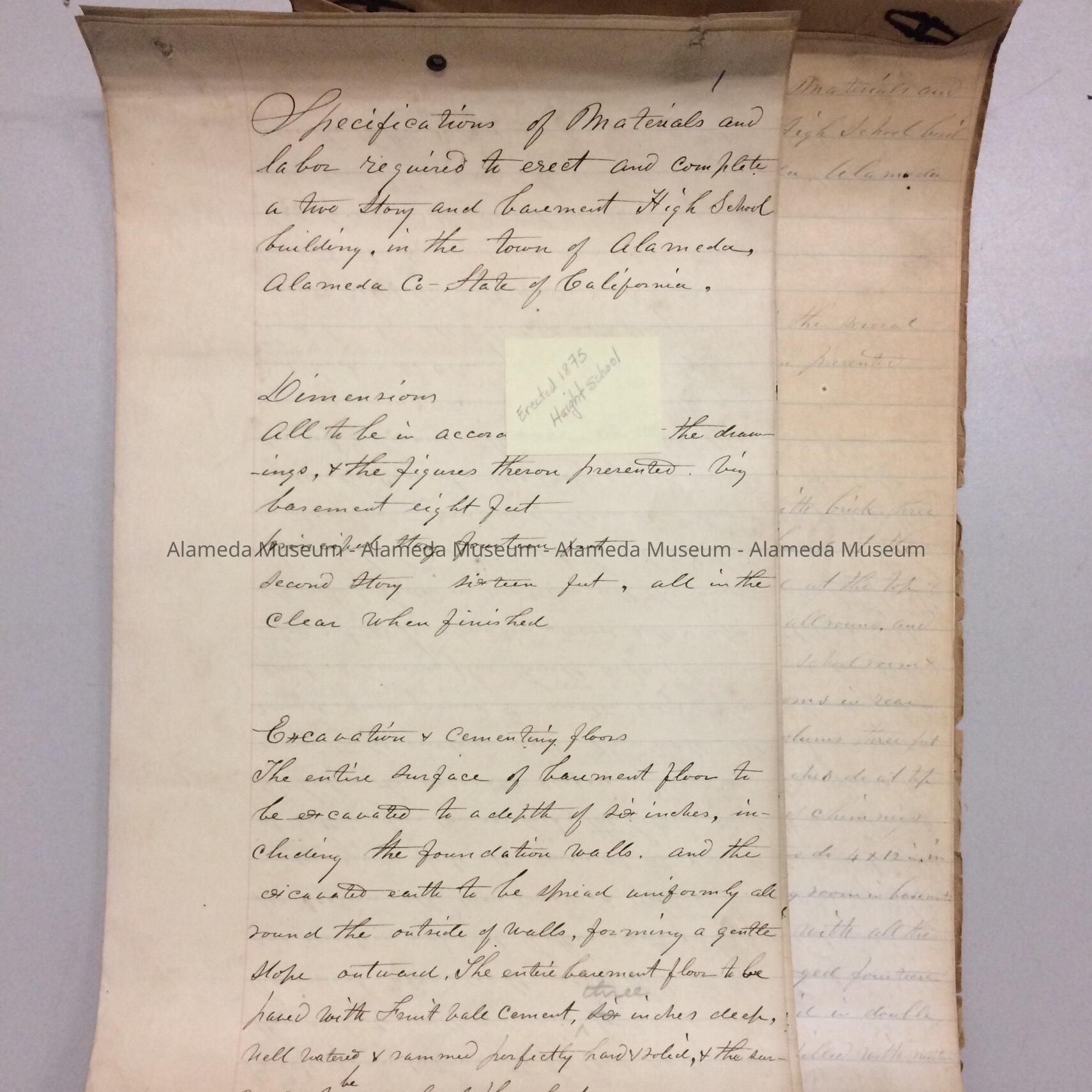 HISTORY OF OBJECTS: SPECIFICATIONS FOR THE CONSTRUCTION OF THE FIRST HAIGHT SCHOOL, 1875.