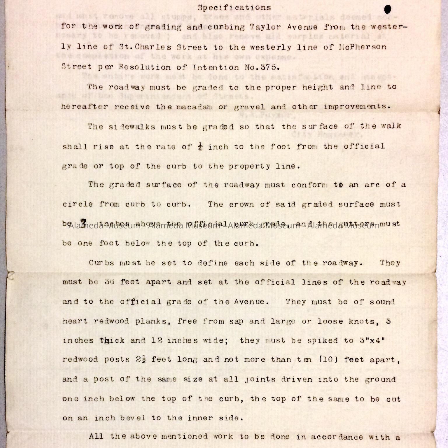 Specifications for roadwork on Taylor Ave, c. 1890sEntry/Object ID