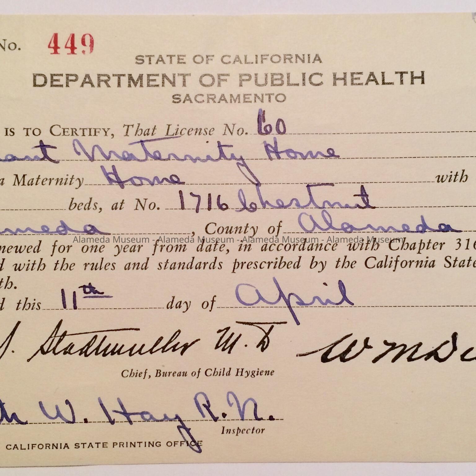 State Operating permit, Tennant's Maternity Hospital, 1929Entry/Object ID