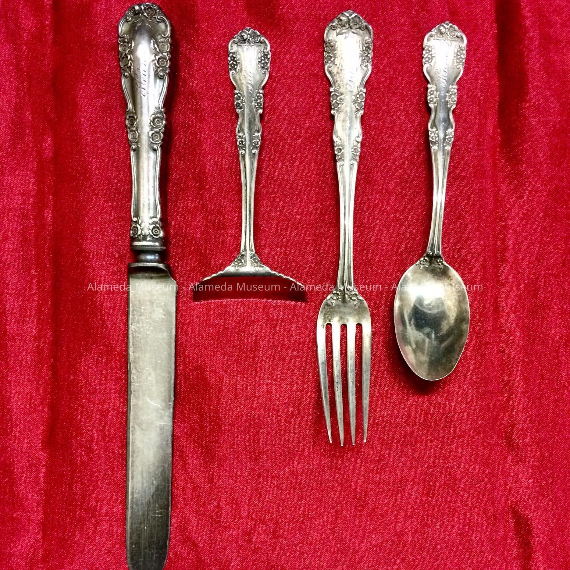 HISTORY OF OBJECTS: FIRST CHILDHOOD FLATWARE WHICH BELONGED TO THE LATE HELENE AMES (1907-2003), LIFE-LONG RESIDENT OF ALAMEDA, CA.