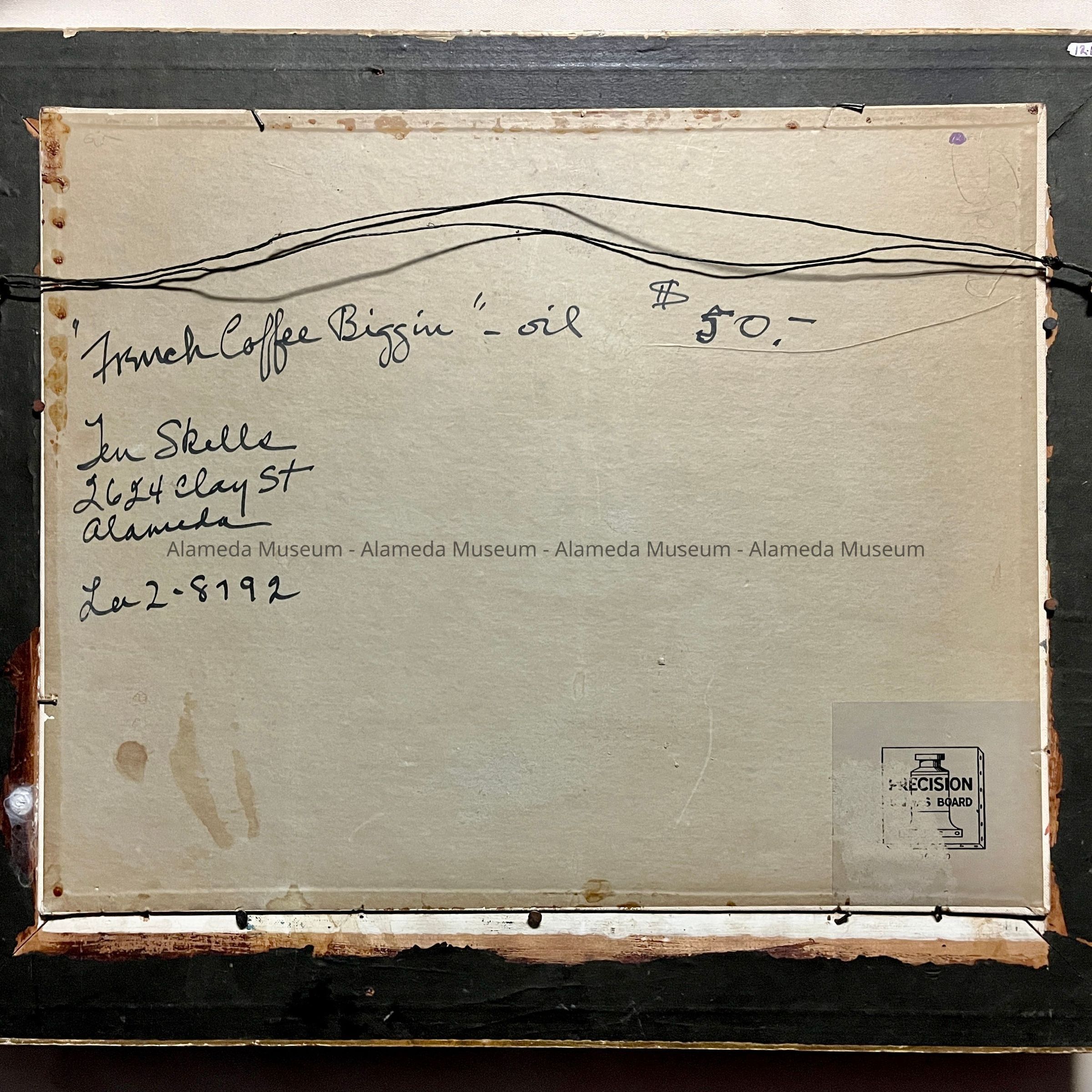 HISTORY OF OBJECT: A PAINTING BY ARTIST GENEVIEVE B. SKELLS (1901-1993), ALAMEDA ARTIST, OF 2624 CLAY STREET, WHERE SHE LIVED WITH HUSBAND, GEORGE W. SKELLS, AND THEIR CHILDREN, GEORGE W. JR. AND ELENORE.